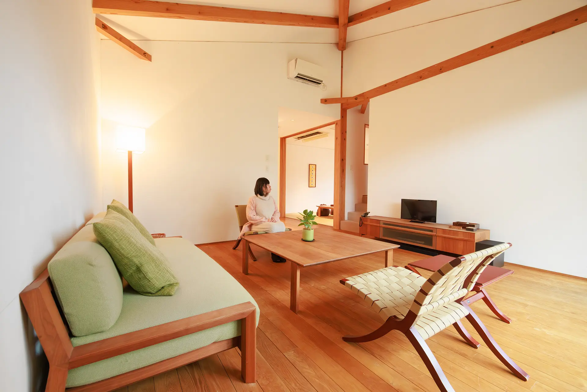 「栗」の棟は、温かみのある雰囲気と落ち着いた家具が素敵にコーディネートされた空間です。