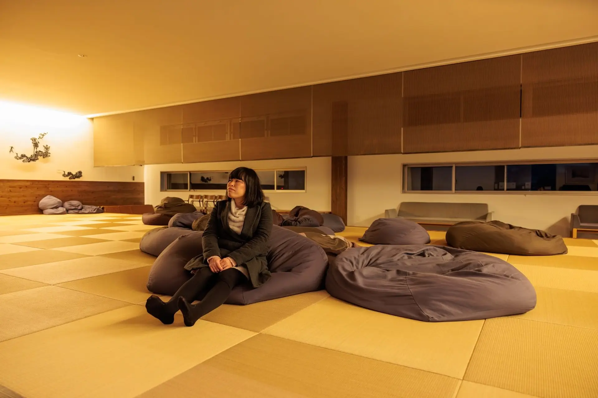 広々とした休憩スペースには、体がふんわりと沈み込むビーズクッションが並んでいて、まさにリラックスにぴったりの空間✨