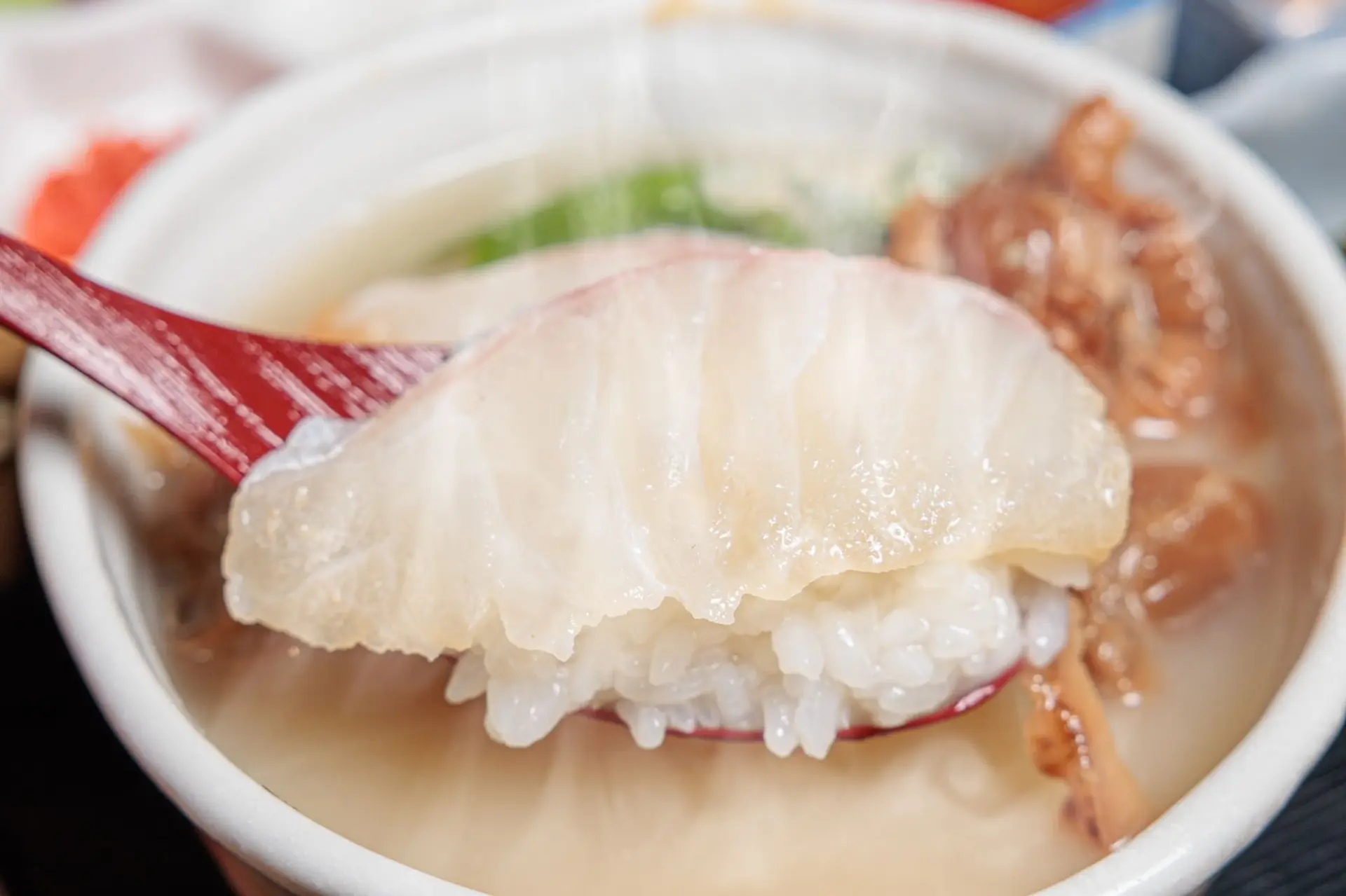 特製の胡麻だれをからめた鯛とお出汁との相性は抜群!