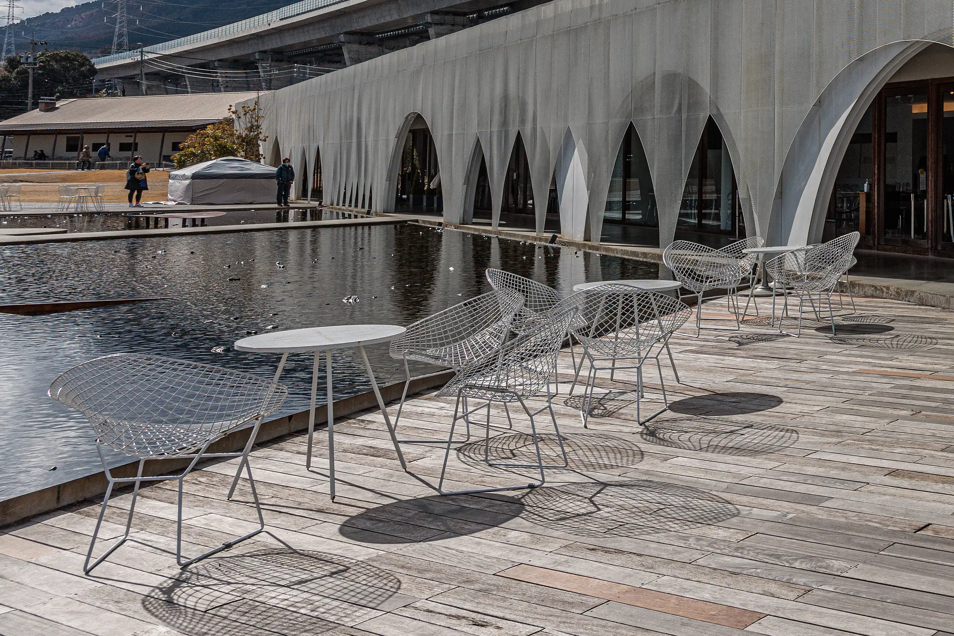 「笠庵」賛否両論までの通路からは、まるで水の都のような絶景を望むことができます。