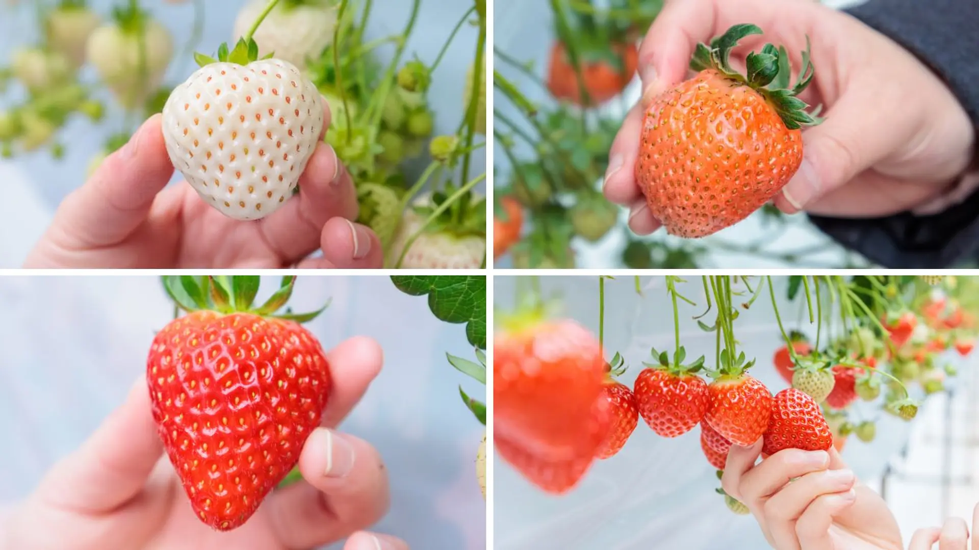 章姫や紅ほっぺなどの人気品種はもちろん、三重県生まれの「かおり野」や白イチゴ、桃の風味が楽しめる桃薫など、珍しい品種も揃っています。