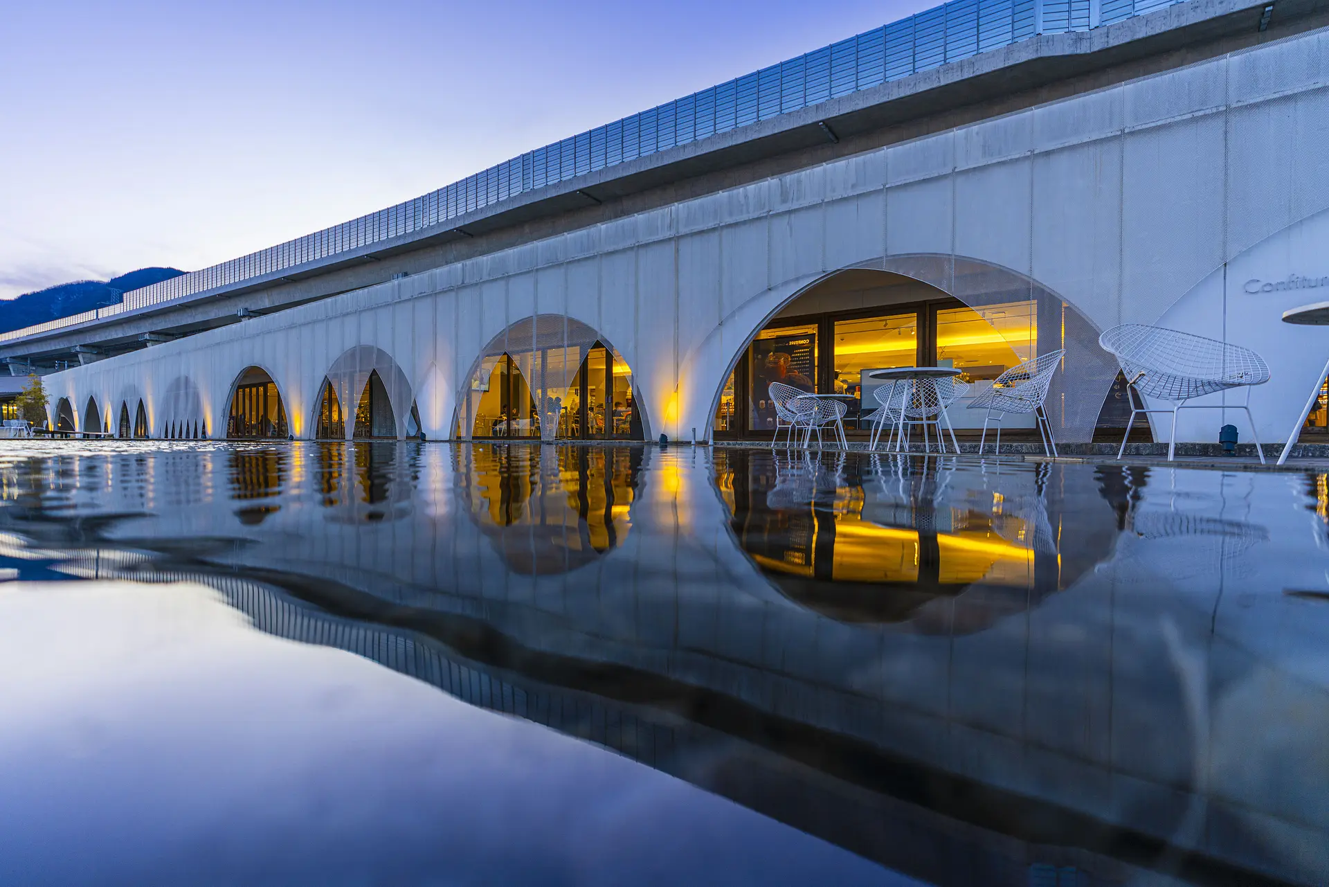 名前の由来である「アクア(水)」と「イグニス(火)」が象徴するように、温泉や料理、そして水に囲まれた美しい建物など、施設の隅々にそのコンセプトが息づいています。