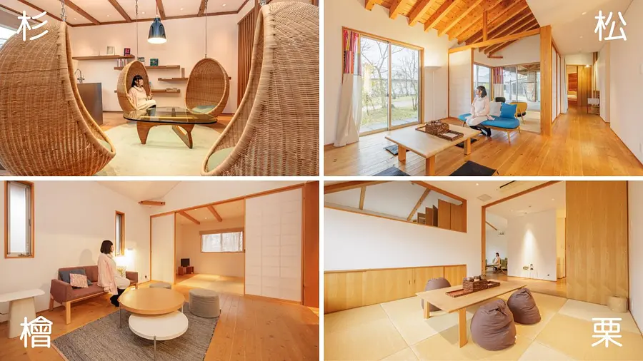 「杉」の棟は、3つの異なる性格を持つ部屋があり、それぞれを行き来するたびに、新しい発見やワクワク感が湧き上がります♪