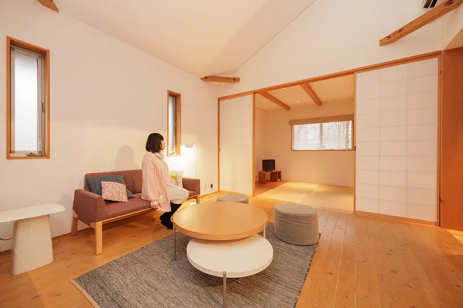 和室はリビングと繋がっており、障子をあければ吹き抜けの空間になります。