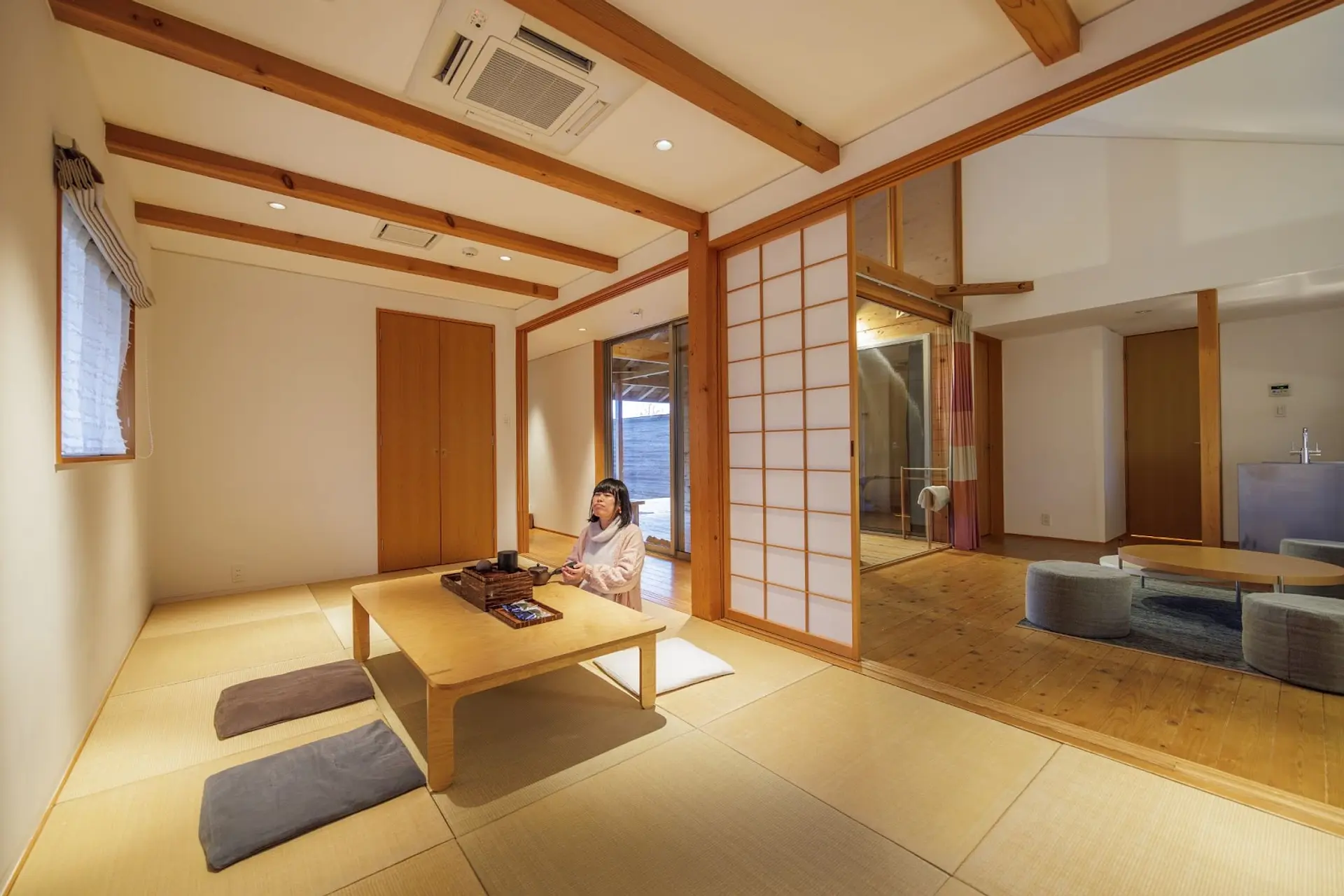 床は畳敷きで、和モダンな雰囲気が漂い、落ち着いた時間を過ごせます。