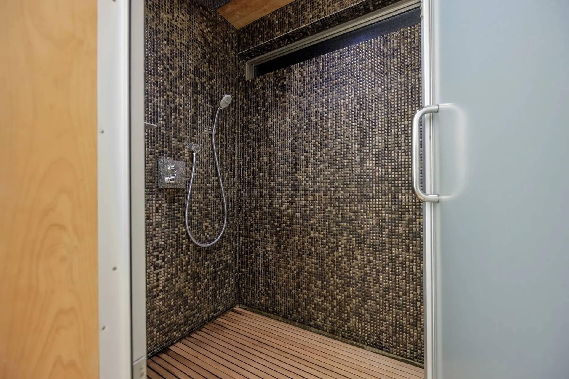 シャワースペースは広く、異国のデザインを感じさせる空間です。