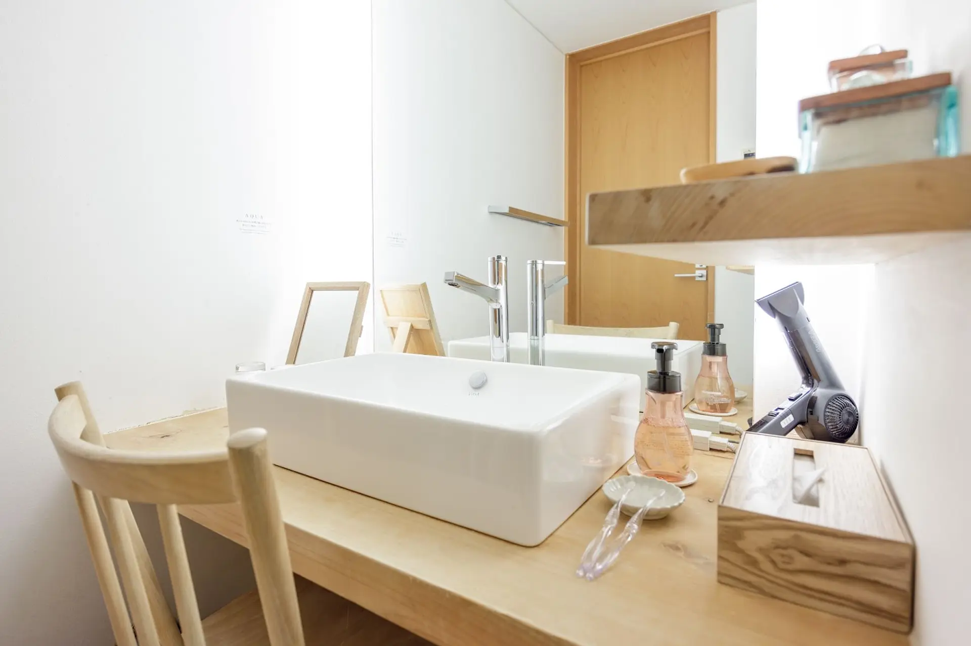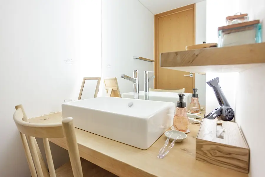 壁一面に設置された大きな鏡は、お化粧や支度をする際にも快適に過ごせます。