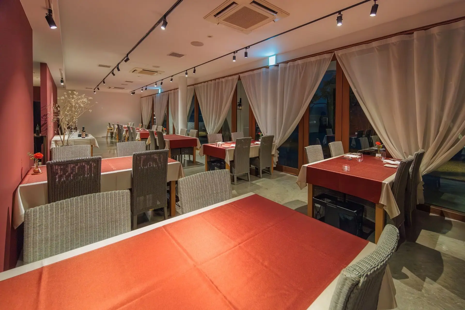 赤を基調としたテーブルクロスや壁の色合いが、さらに上質な雰囲気を演出しています。