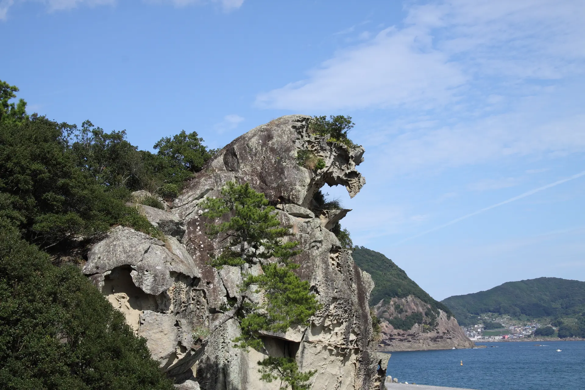 世界遺産である「獅子岩」は、高さ約25m、周囲約210mの奇岩で、熊野灘に向かって獅子が吠えているように見えることからその名がつけられました。