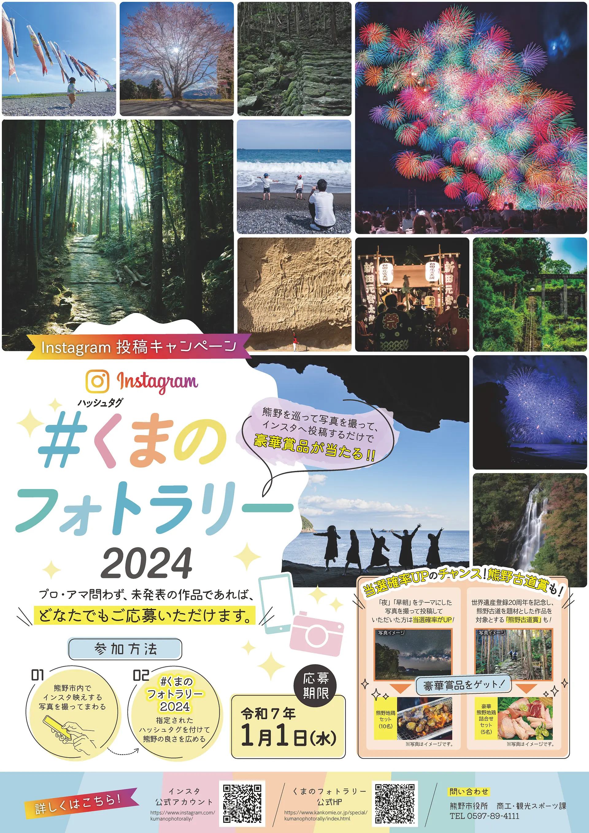 熊野市において、多くの観光資源をさらに活用するため、新たな観光スポットを観光客目線で掘り起こしていただくことを目的にした「くまのフォトラリー2024」が開催中です。(応募期間は令和7年1月1日まで)