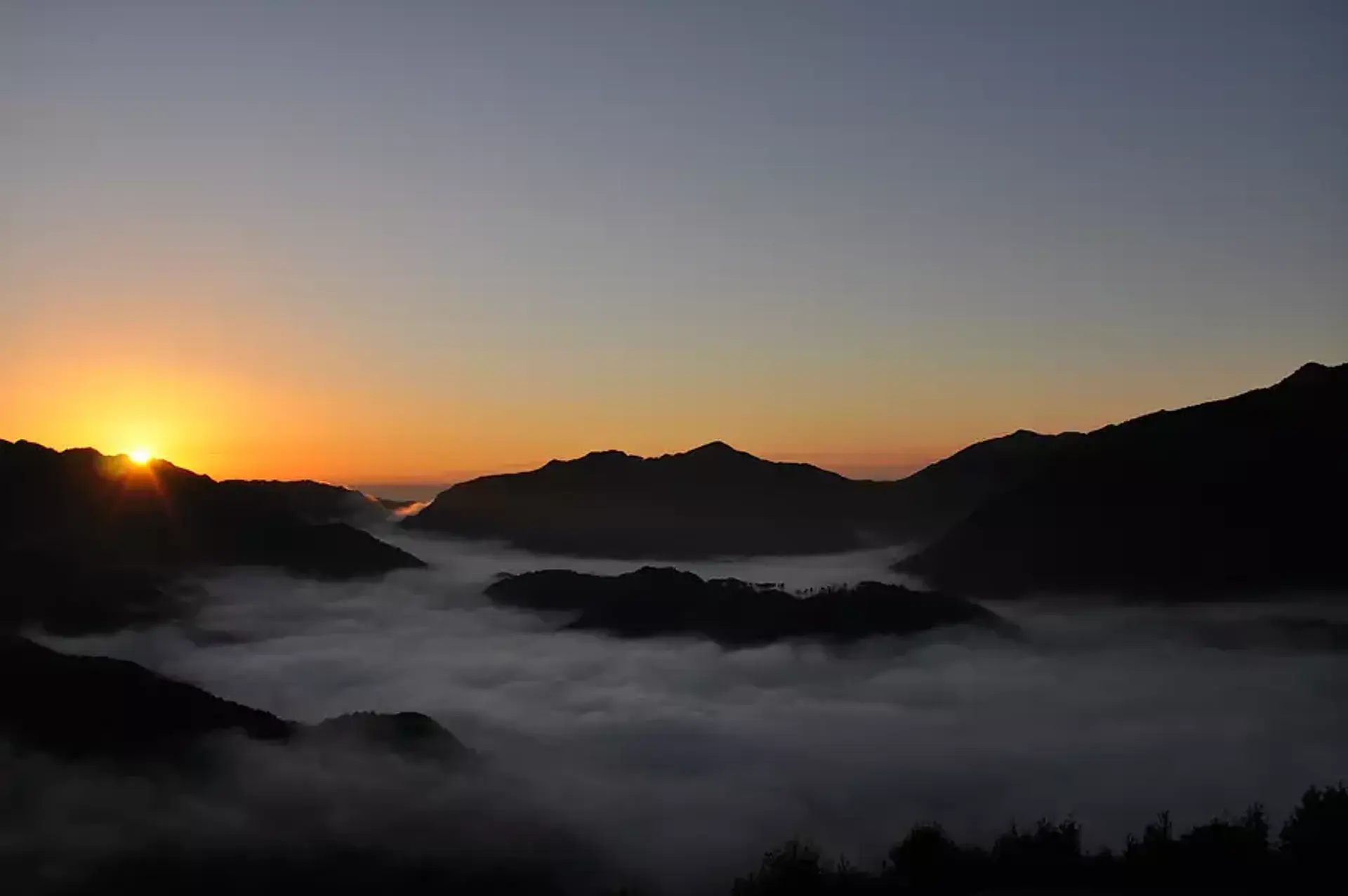 秋の終わりから冬にかけて晴れた早朝、ツエノ峰の標高495m地点にある展望台からは、条件が揃ったときに美しい雲海を望むことができます。朝日が昇り、一面に広がる雲海がやわらかな光に包まれる光景はとても幻想的。雲海撮影スポットとして近年注目を集めている、絶景スポットです。
