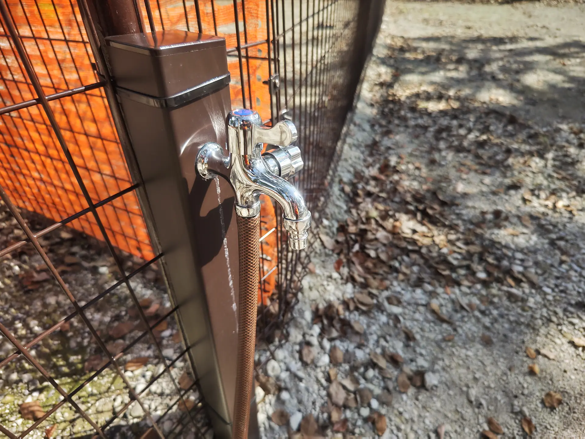 区画と区画の間には水道が設置されており、ワンちゃんの足を洗ったり、給水時にも便利ですね!