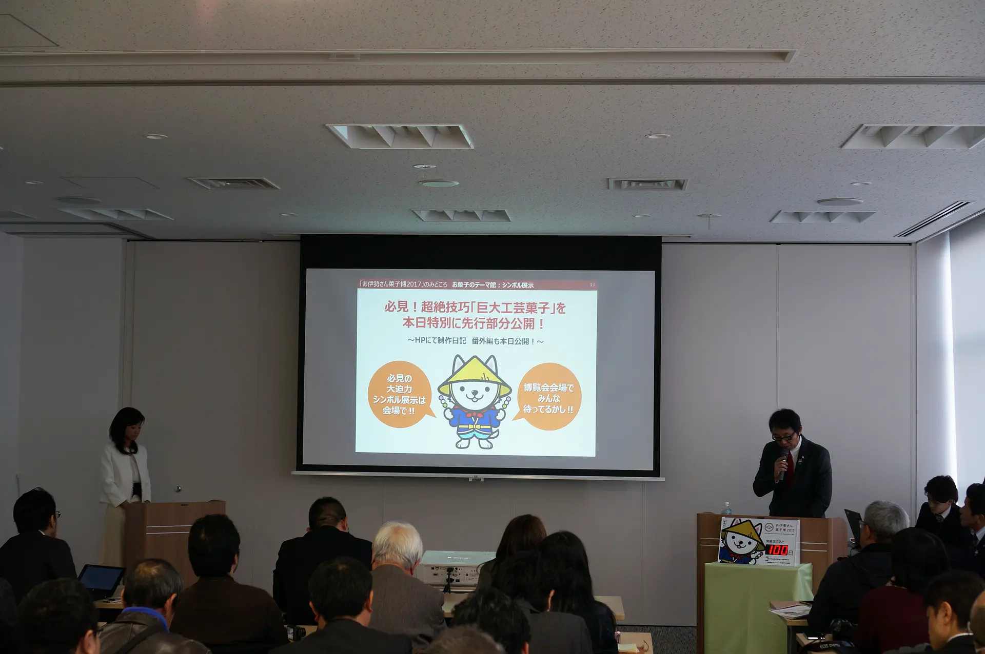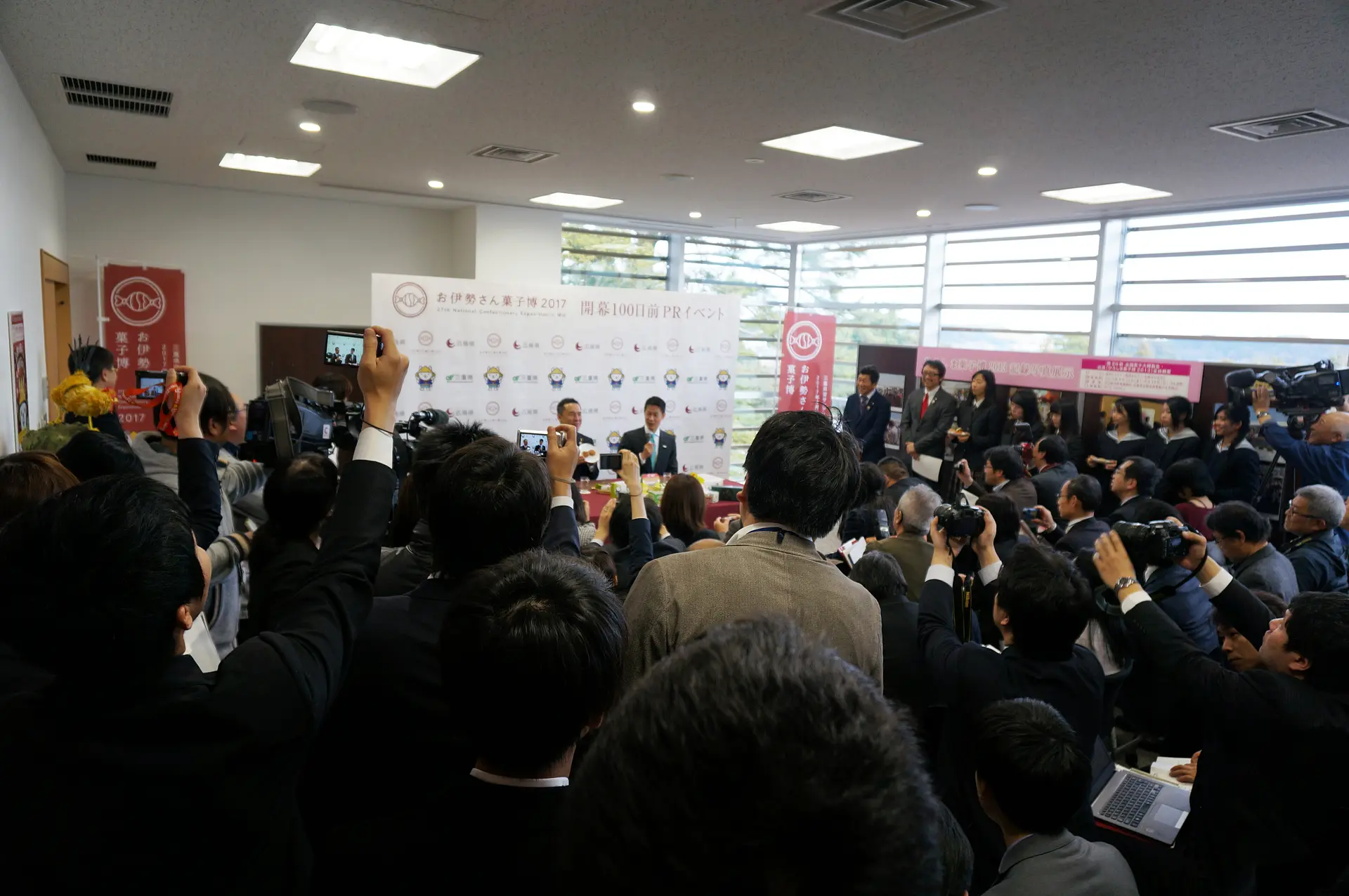 1月11日は開幕の100日前ということで、伊勢市にある神宮会館にて「お伊勢さん菓子博2017 開幕100日前イベント」が報道機関等を対象に開催されました。