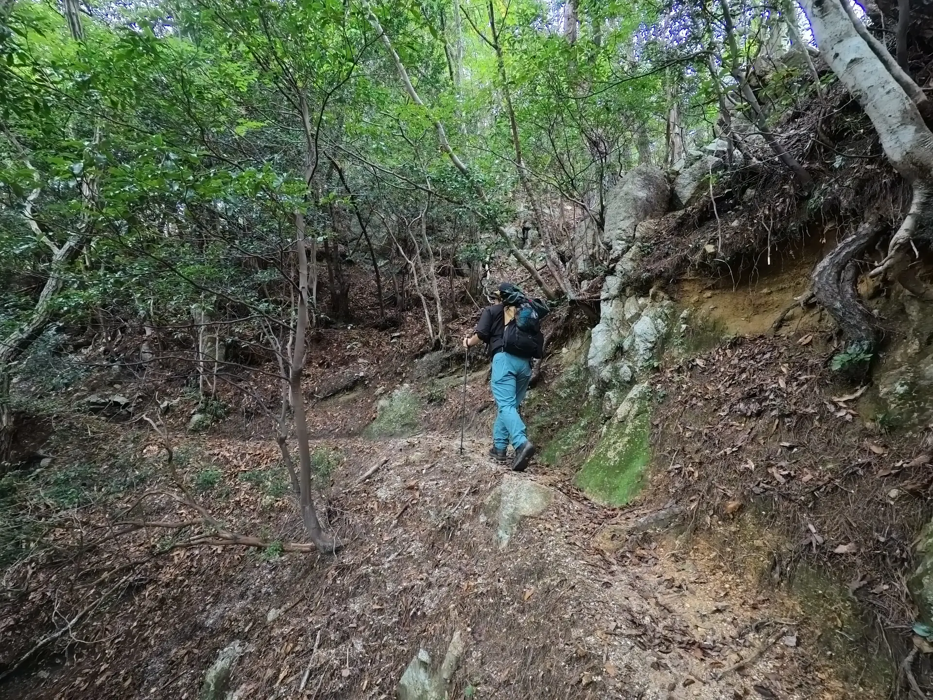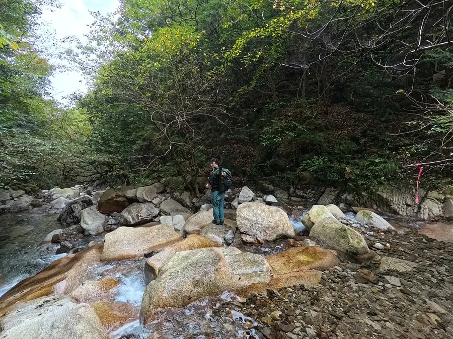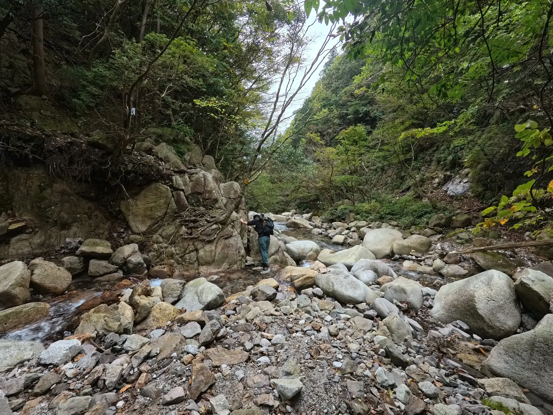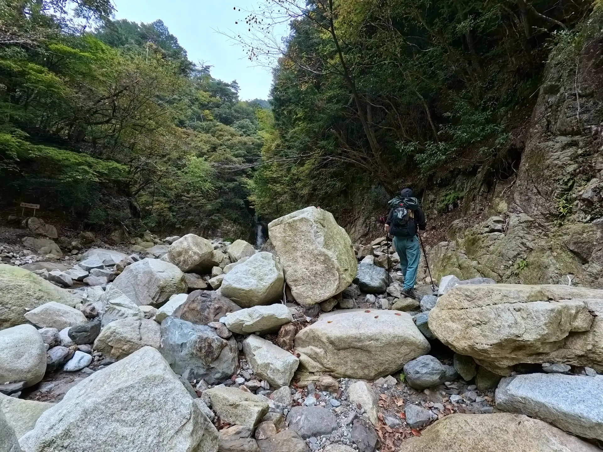 しばらく川沿いを歩きます。時折、岩場を上り下りします。