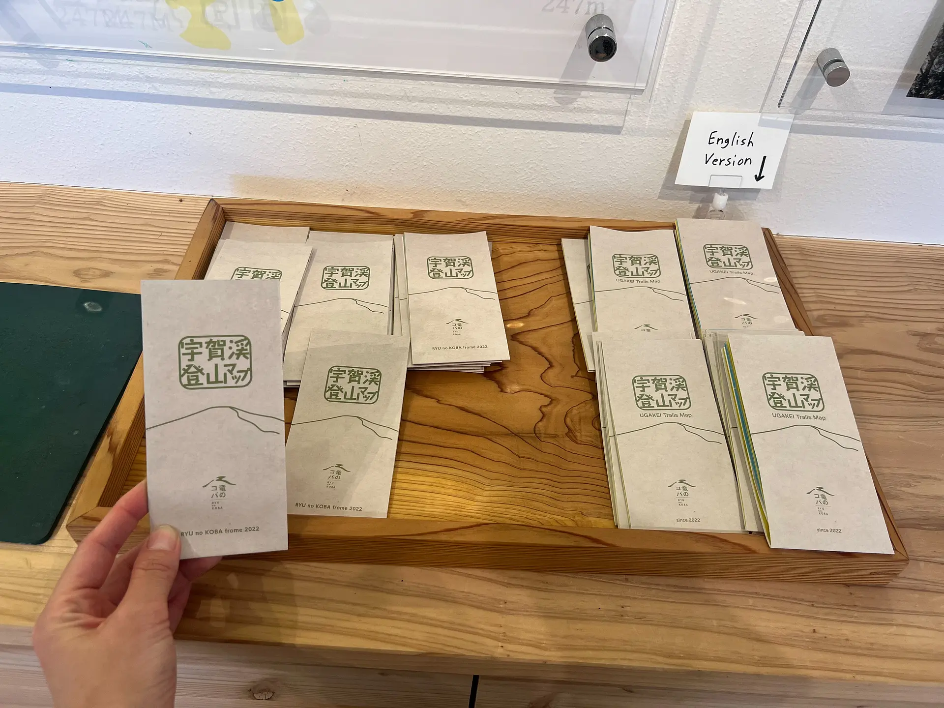 宇賀渓散策する際に、宇賀渓観光案内所でもらえる宇賀渓登山マップが便利です。景色の様子や危険箇所がイラストとともに載っていて、わかりやすいです。YAMAPアプリなどの地図とともに併せて持っておくと、とても便利ですよ!