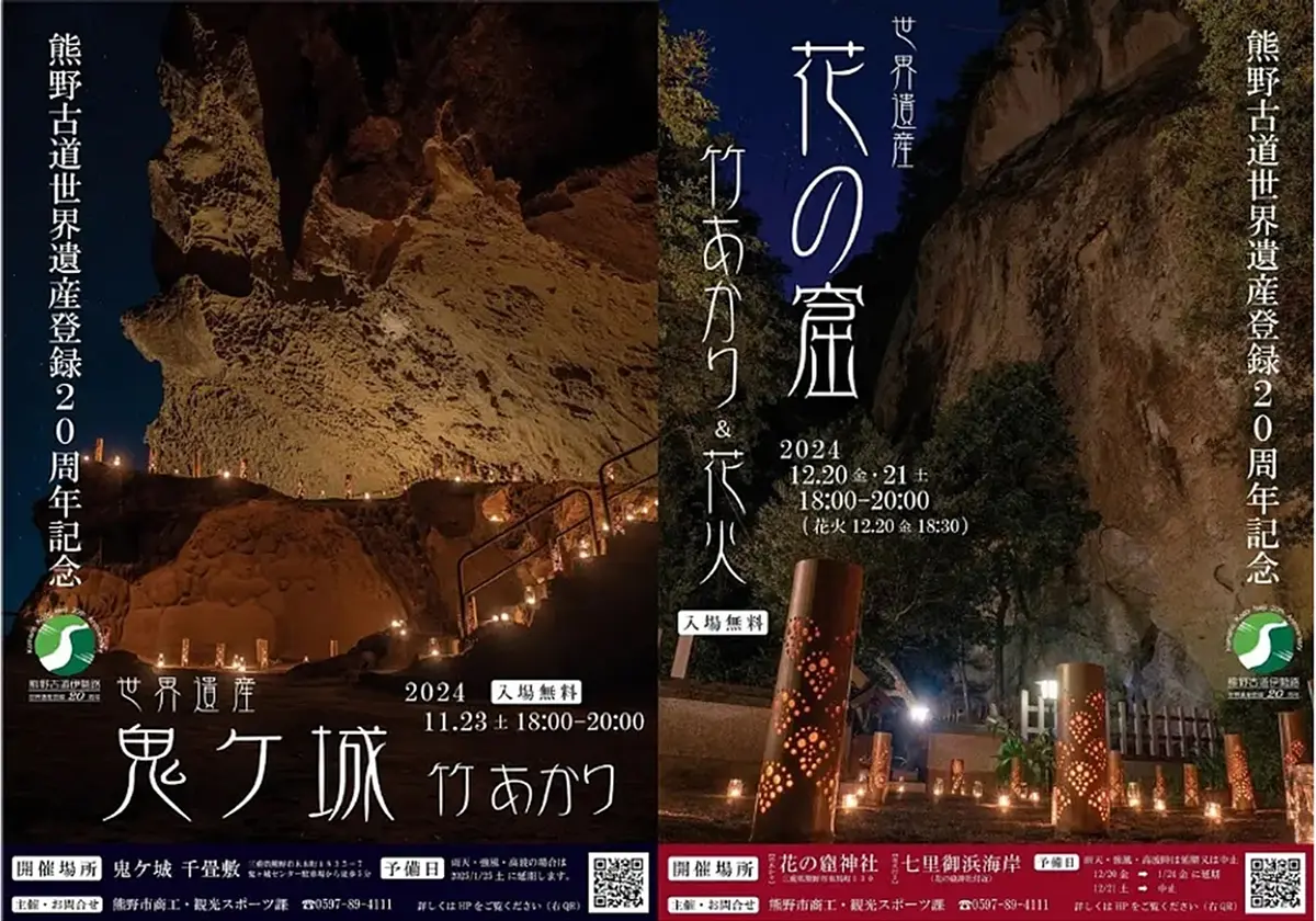 11月23日(土)には、世界遺産登録20周年を記念して世界遺産「鬼ヶ城」と「花の窟」を舞台に竹あかりとキャンドルを使ったナイトイベントが開催されます!「花の窟」では花火の打ち上げもあるとか!?