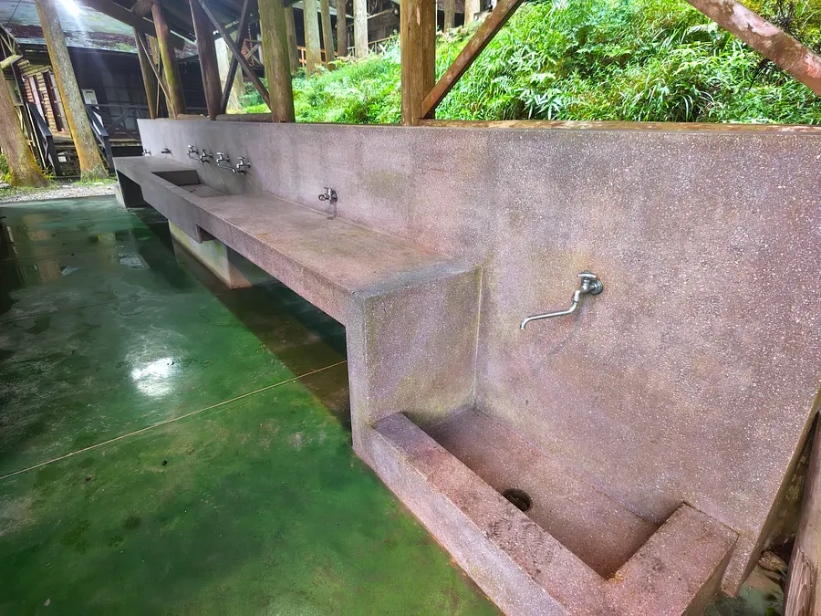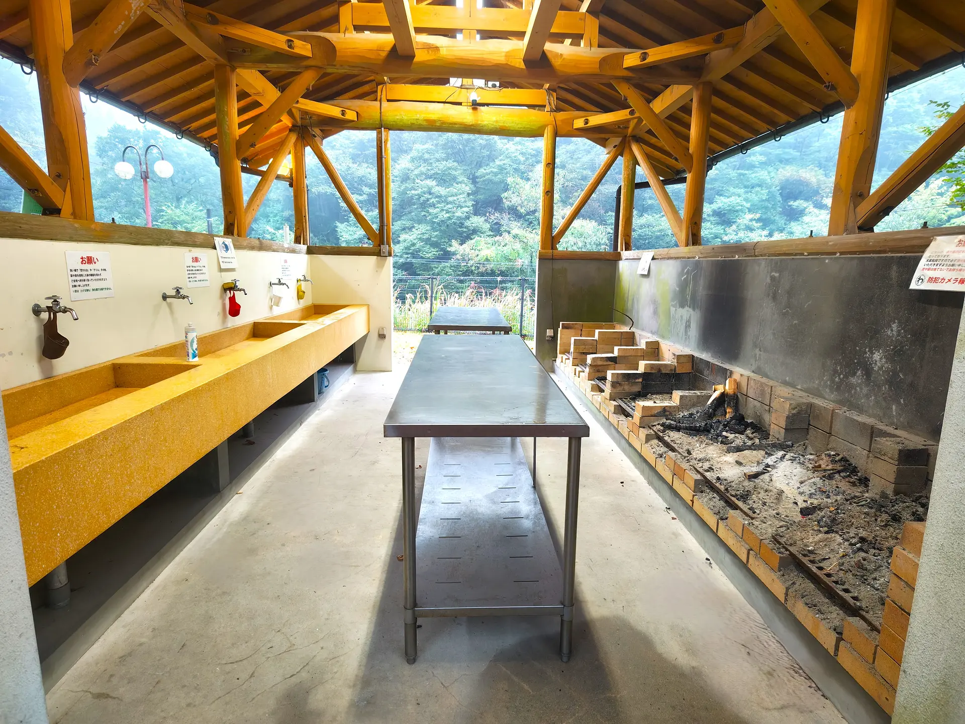炊事棟には洗い場と灰捨て場があります。屋根も付いているので雨の日も安心です!