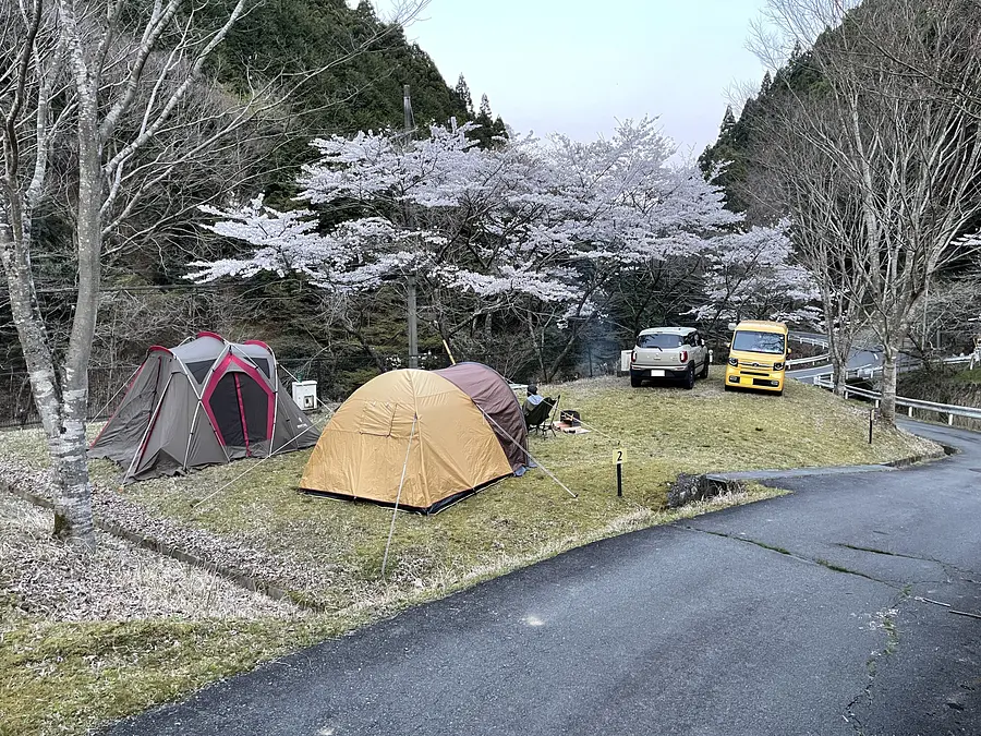 春には桜キャンプを楽しめるサイトもあります。近くには清流が流れ夏は水遊びもできますよ!