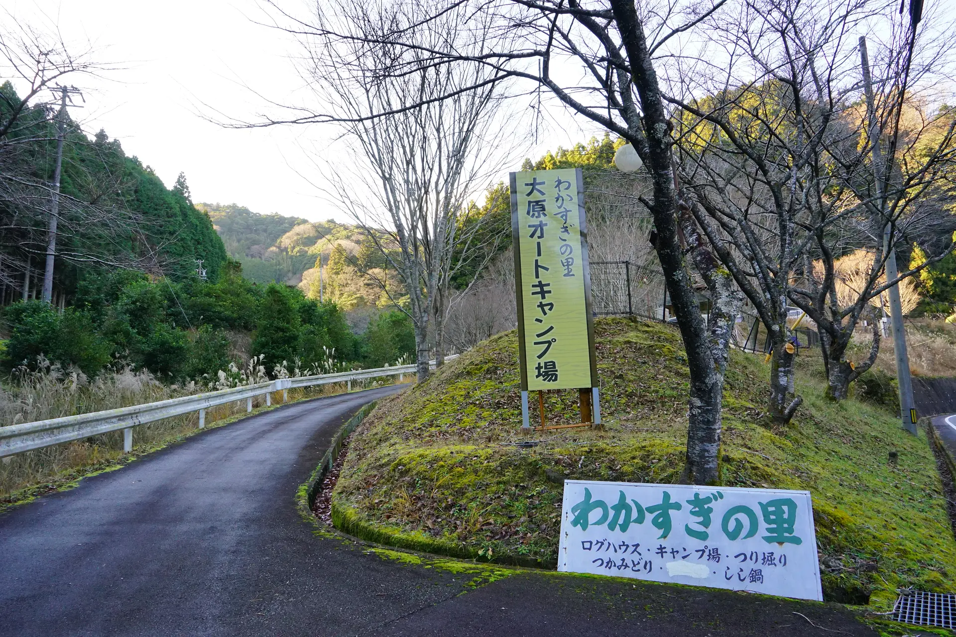 管理棟で受付を済ませ、車で移動する事3~4分ほどのところにオートキャンプサイト(わかすぎの里大原オートキャンプ場)があります。
