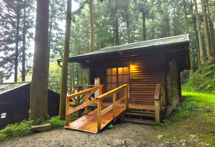 管理棟で受付を済ませ、車で移動する事2~3分ほどのところにコテージが5棟並んでいます。