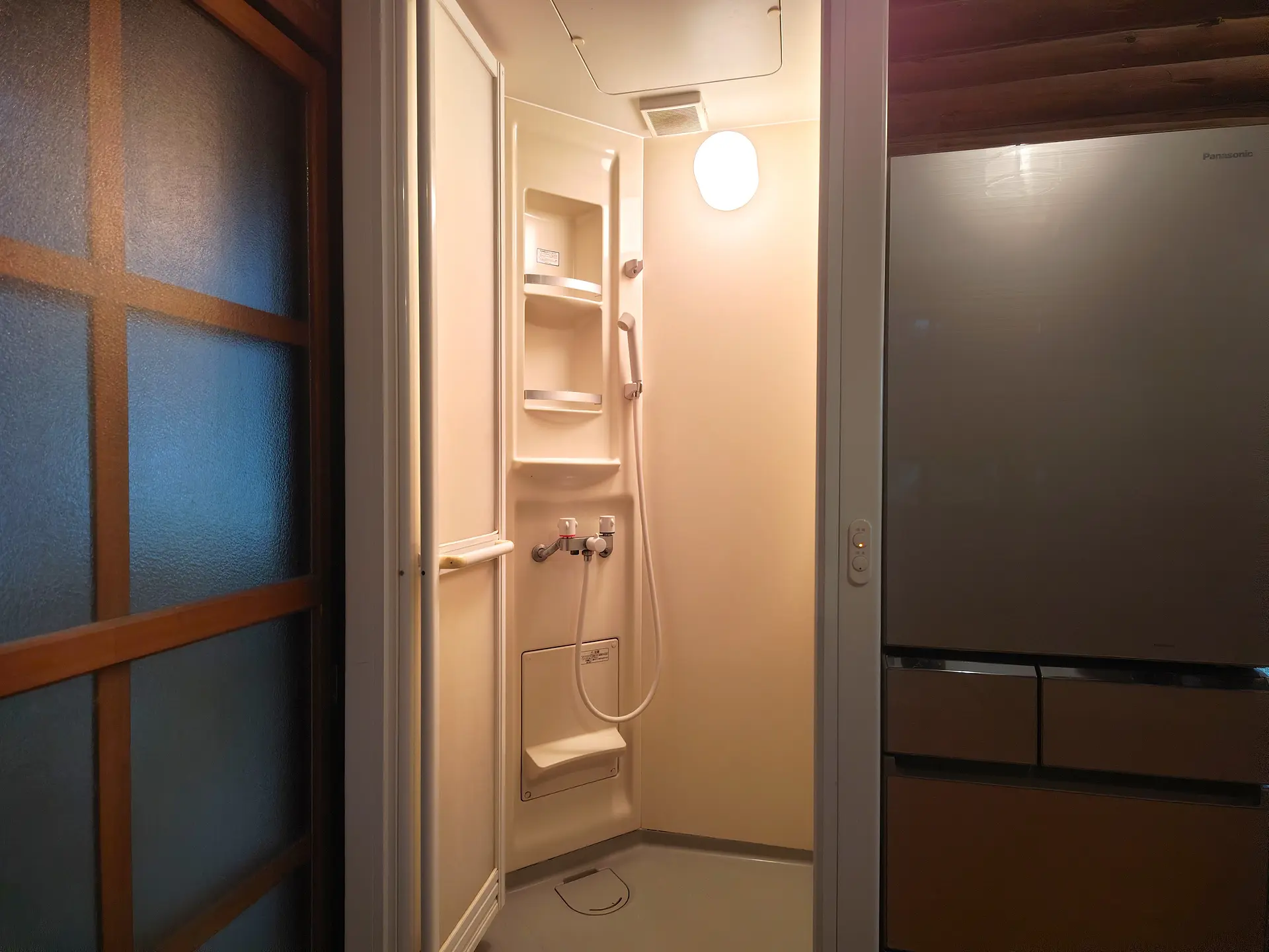ログハウス3棟の内、2棟にはシャワーブースも付いています!また大型家庭用冷蔵庫付きのログハウスもありますよ!(1棟のみ)