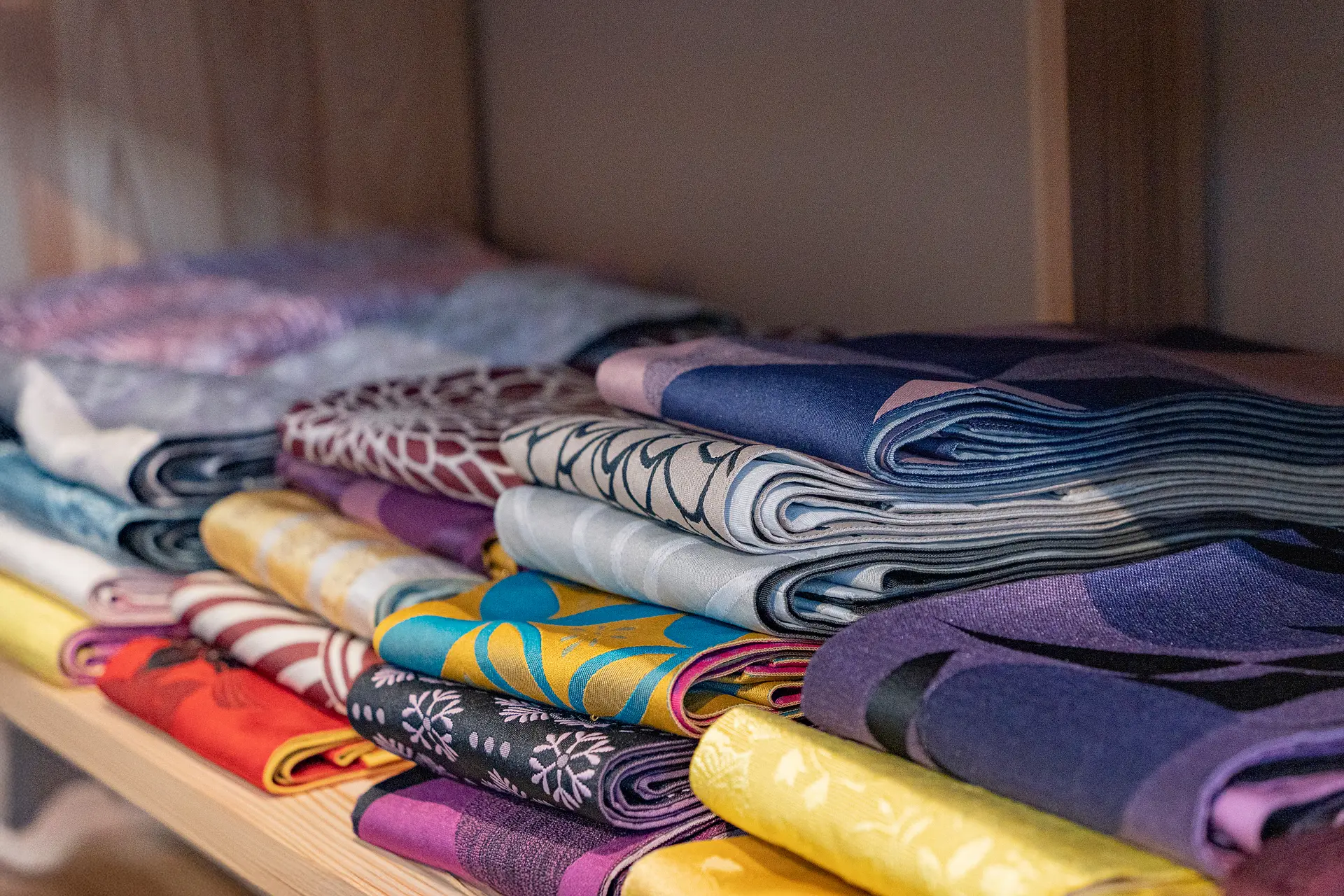 ちなみに私は160cm。着付けで丈を調整していただけるので、多くの種類から選ぶことができました。