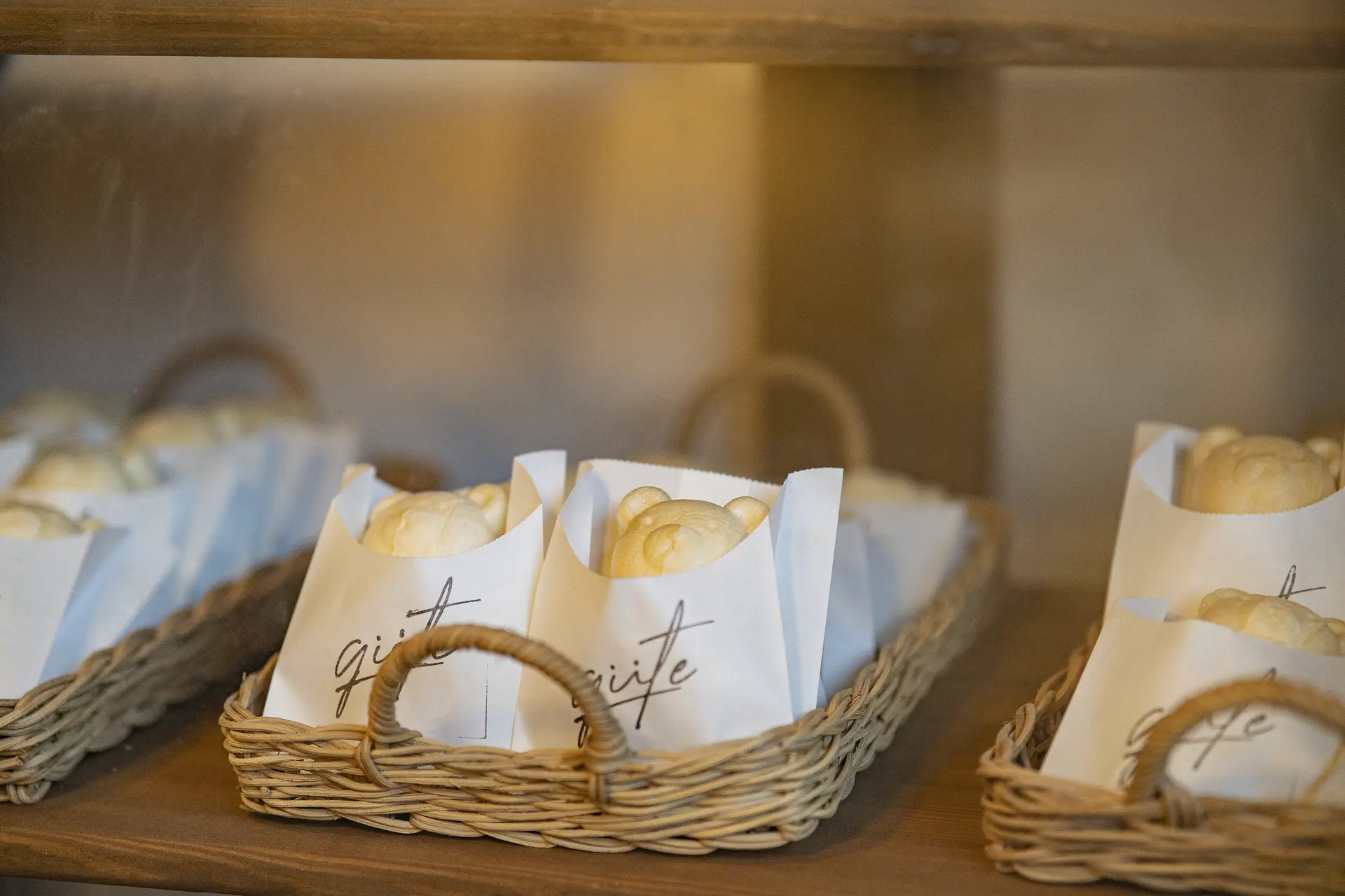 「食べ歩きされますか?」と聞かれ、「はい」と答えると、あぶり最中を持たせてくれます。サクサクの最中に、自家製のあんこがおいしい和風スイーツ。季節に合わせて登場するパフェにちょこんと乗る色付きくまちゃんもかわいくて写真撮影マストです!