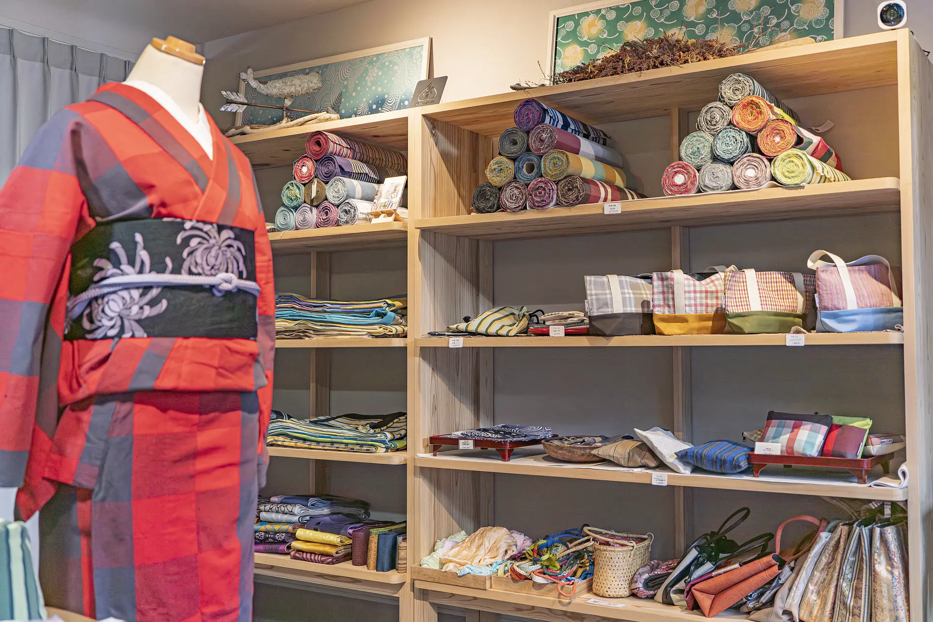 店主の谷脇節子さんは、普段着として快適に着られる、かわいい伊勢木綿に魅せられ、着物で過ごすようになったそう。友人と関宿へ遊びに行ったとき、伊勢木綿の着物と歴史を感じる街並みがマッチしていることに衝撃を受けたといいます。