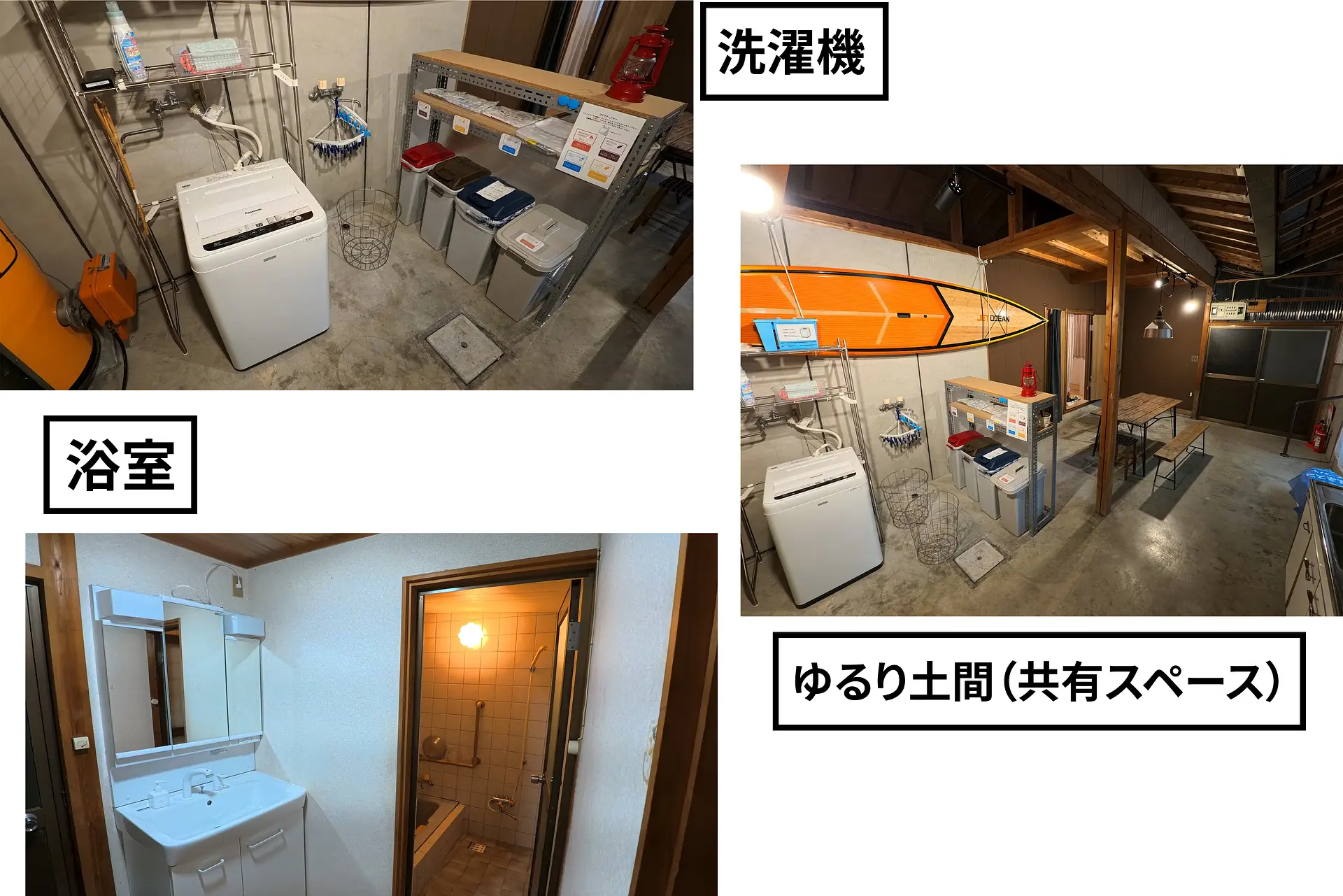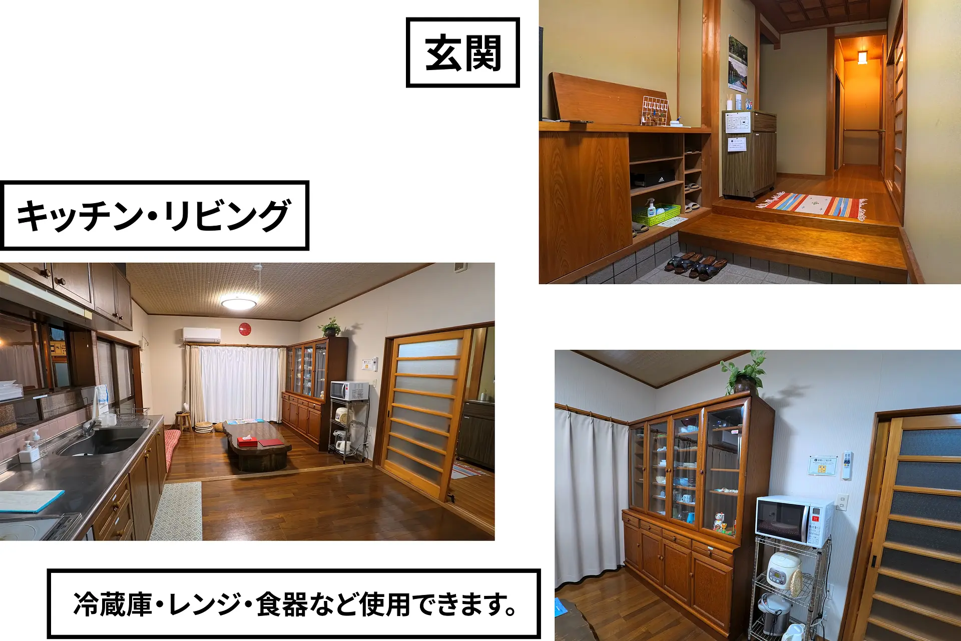 施設内は、キッチン・浴室・トイレ・洗濯機・共有スペースがあり、調理器具や食器も利用することができます。