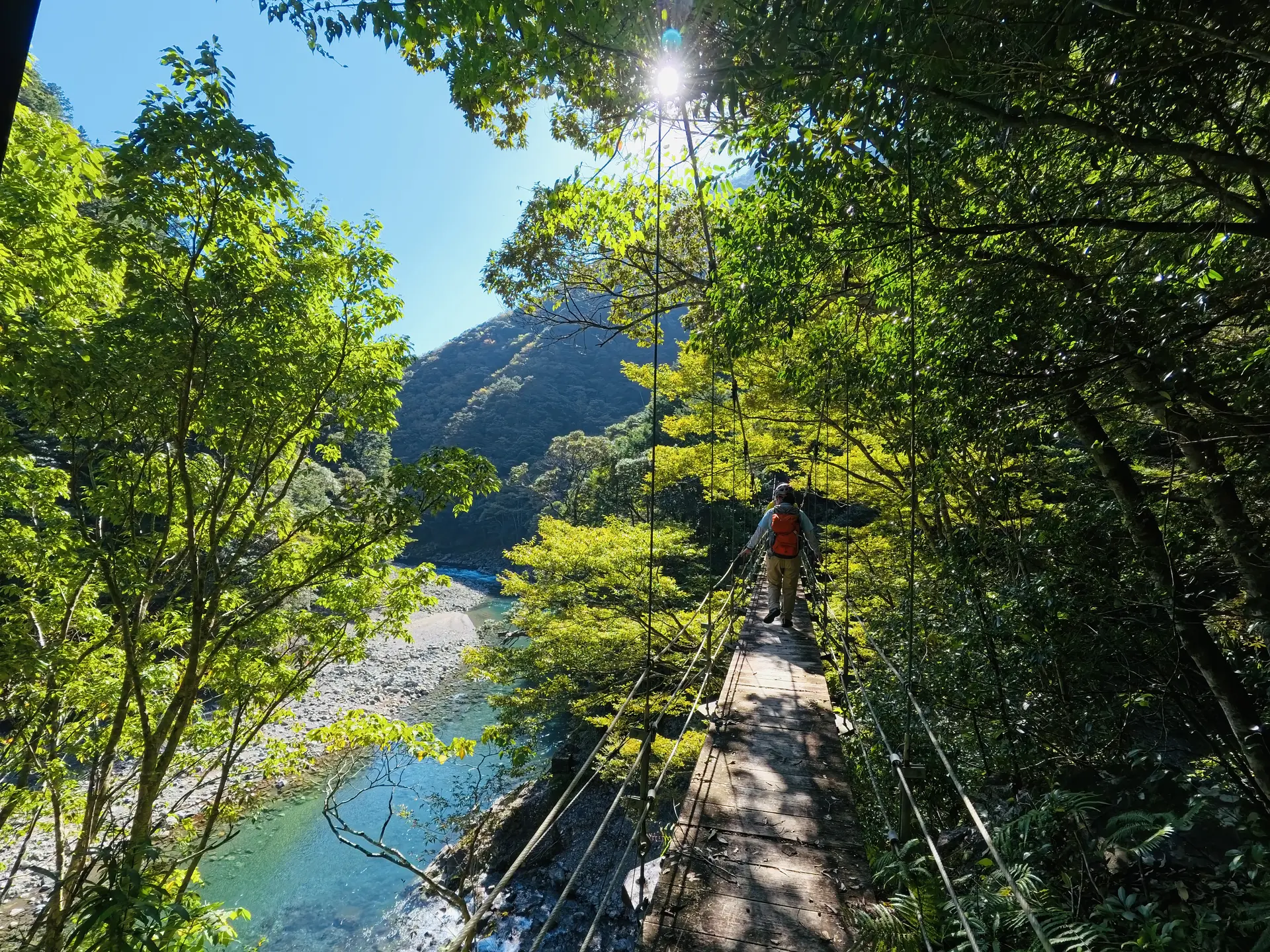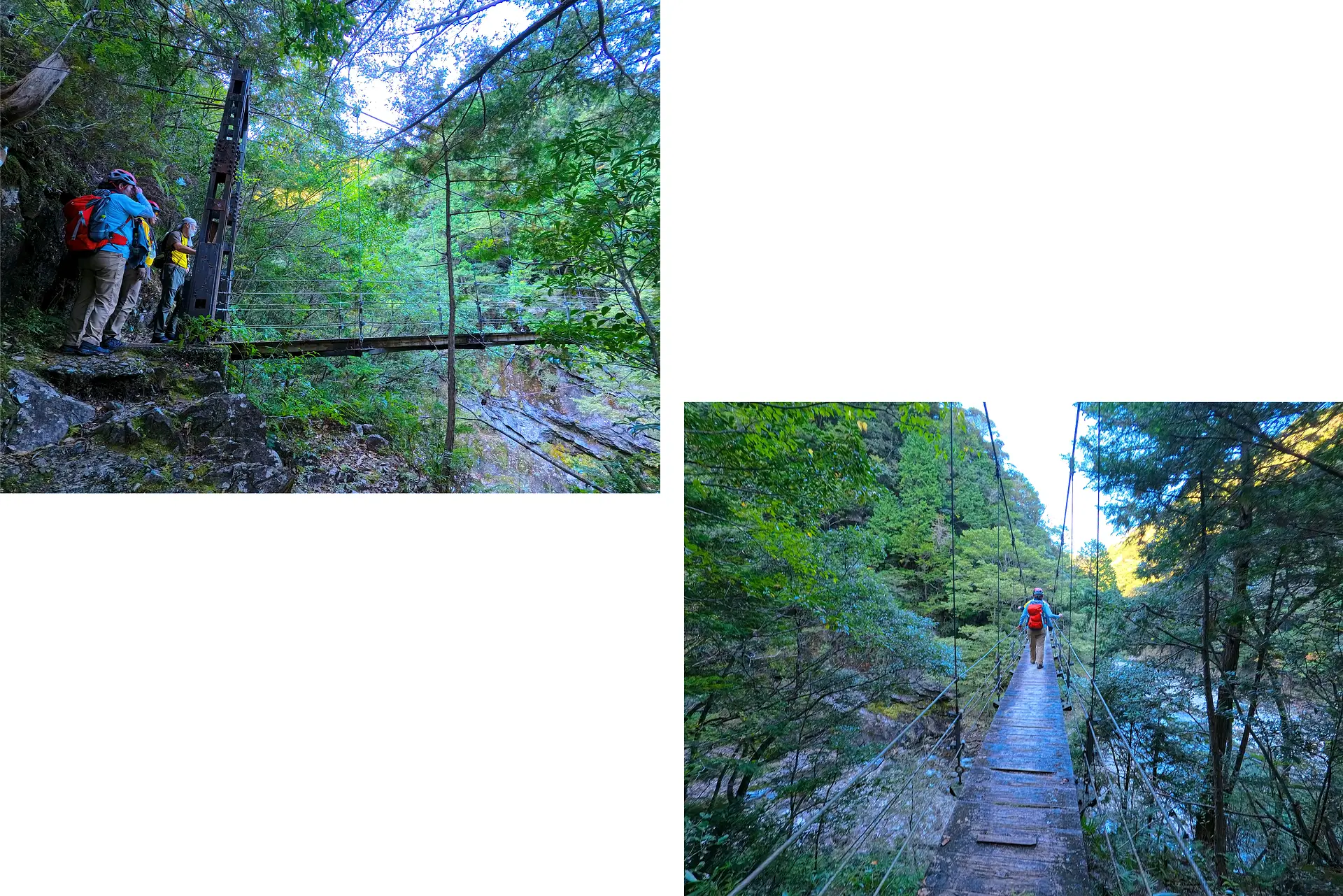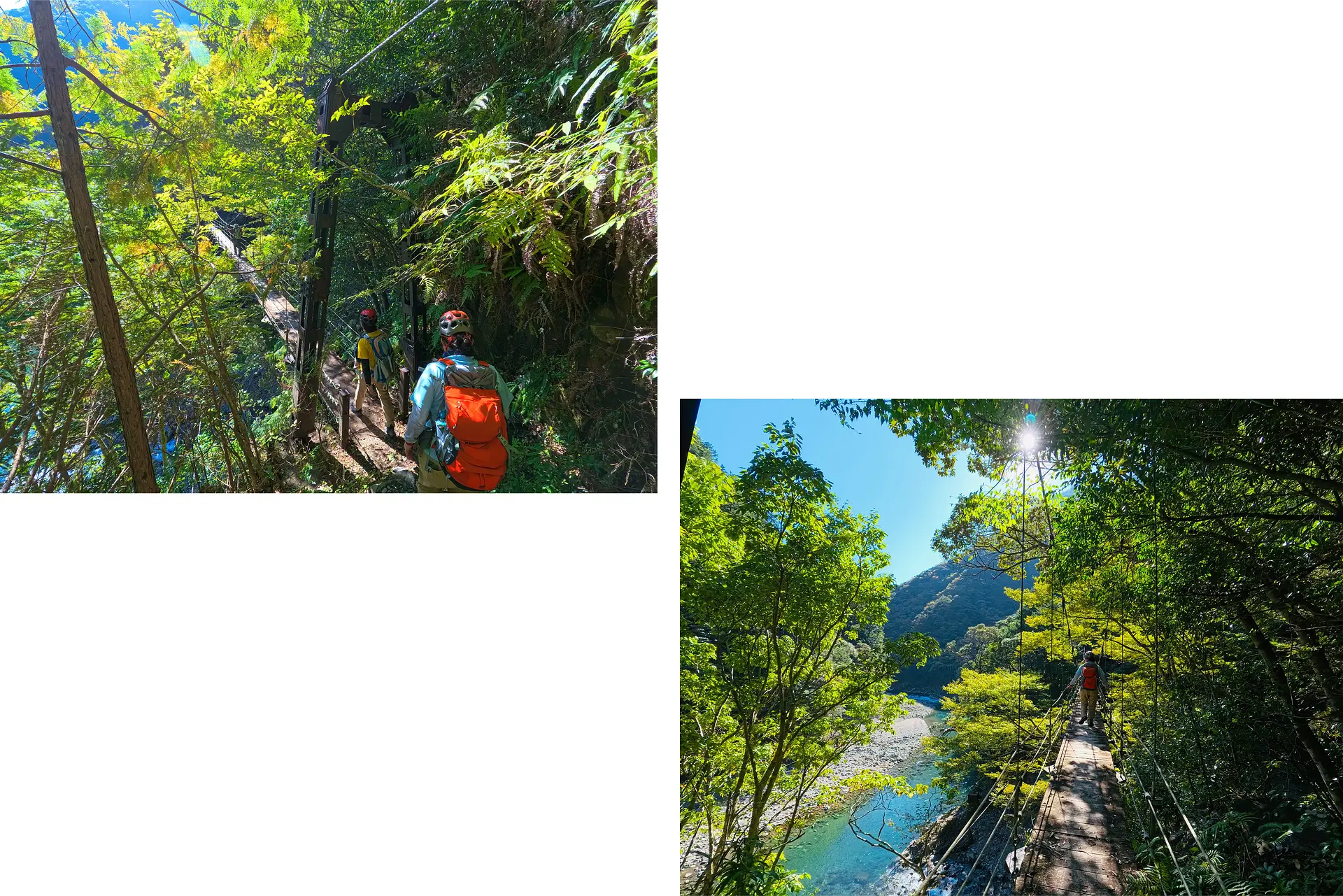 はじめての大杉谷ツアーでは、4ヵ所の吊り橋を渡ります。吊り橋は揺らさず、ゆっくりと歩きます。