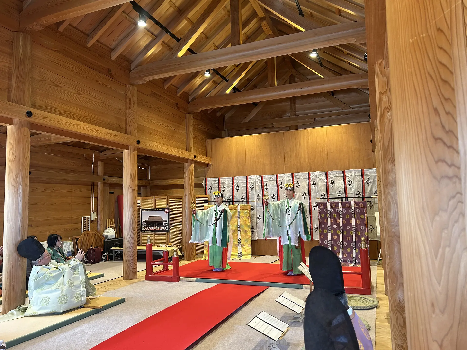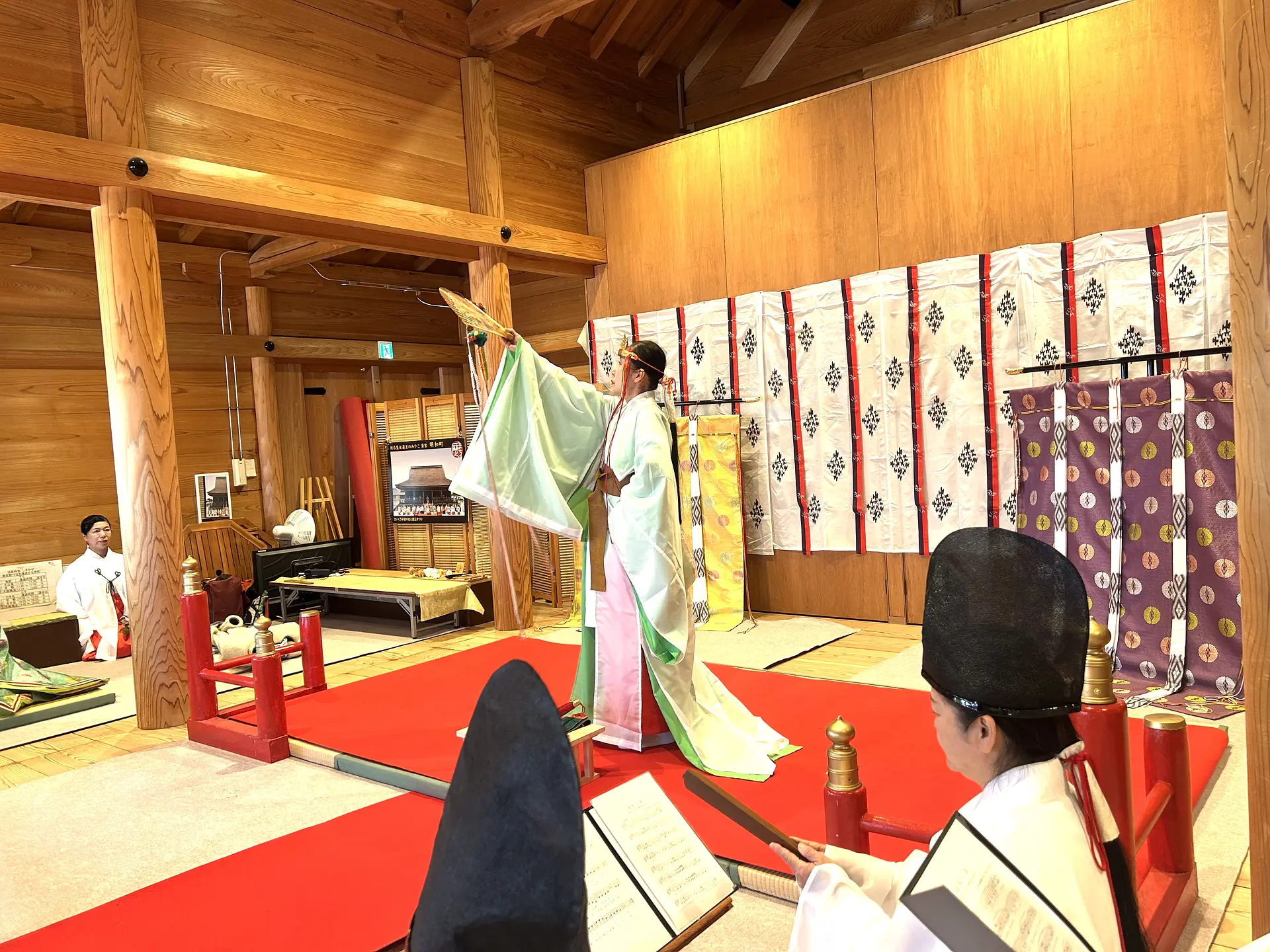心を込めて舞われる神聖な舞はとても素晴らしく、神楽鈴の清らかな響きを聞くだけで心が洗われるようでした。