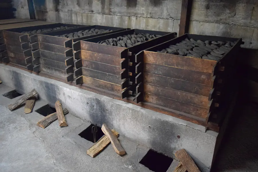 鹿児島や四国も鰹節の産地として知られますが、伊勢志摩の鰹節の強みは、燻す時に使う薪に恵まれたことだそう。備長炭の原料である「ウバメガシ」が豊富でした。備長炭は火力が強く、長時間安定的に燃え続けます。さらに、燻す途中には、積み上げた大きな木のせいろを上下入れ替えて、火の循環を均一に。