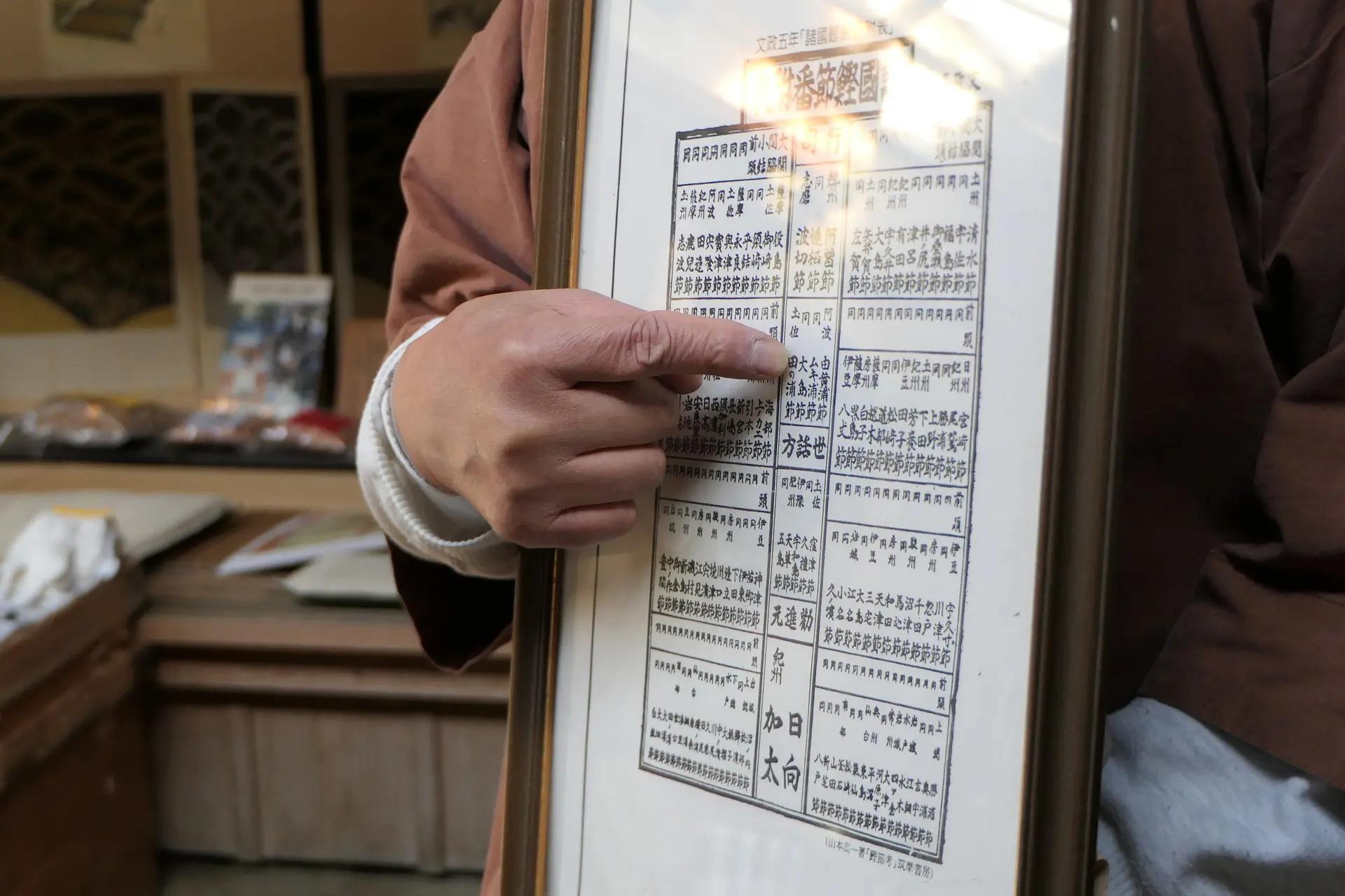 「この番付表を二十歳の頃、学生時代に見つけちゃったんです」。天白さんが手に持つのは、相撲と同じようにランキングを付けた、鰹節の番付表。江戸時代に庶民によって作られたものです。