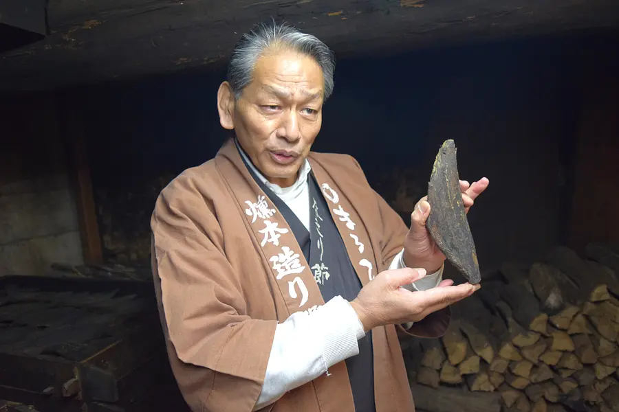 天白さんの鰹は、江戸時代中期に完成した「手火山(てびやま)製法」により、労力と時間をかけた手作業で作られます。火加減を手で調整しながらじっくりと燻すこの旧式の製法は、全国に数件しか残っていないそうです。