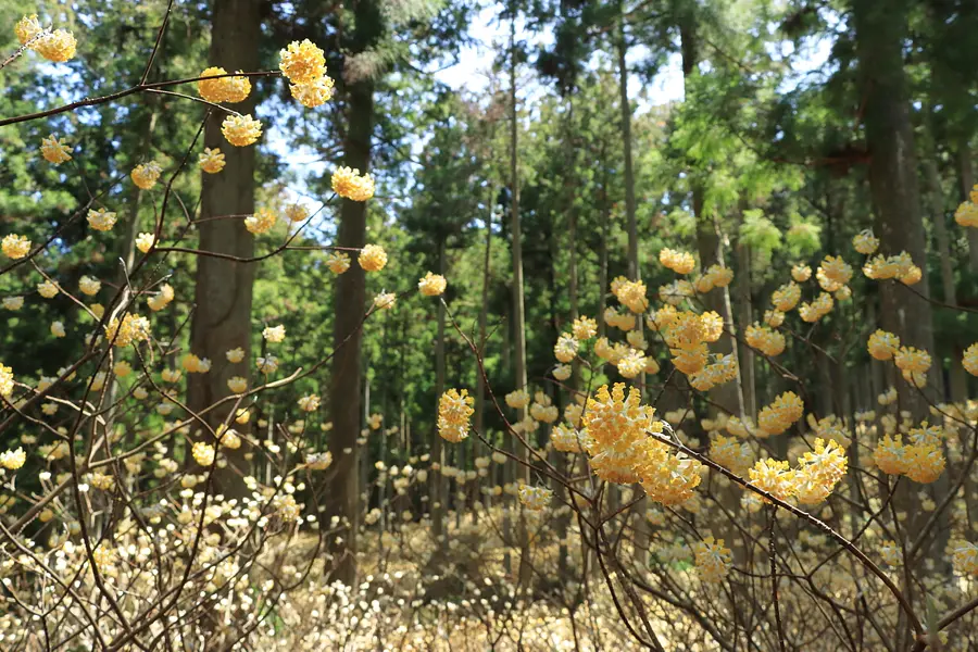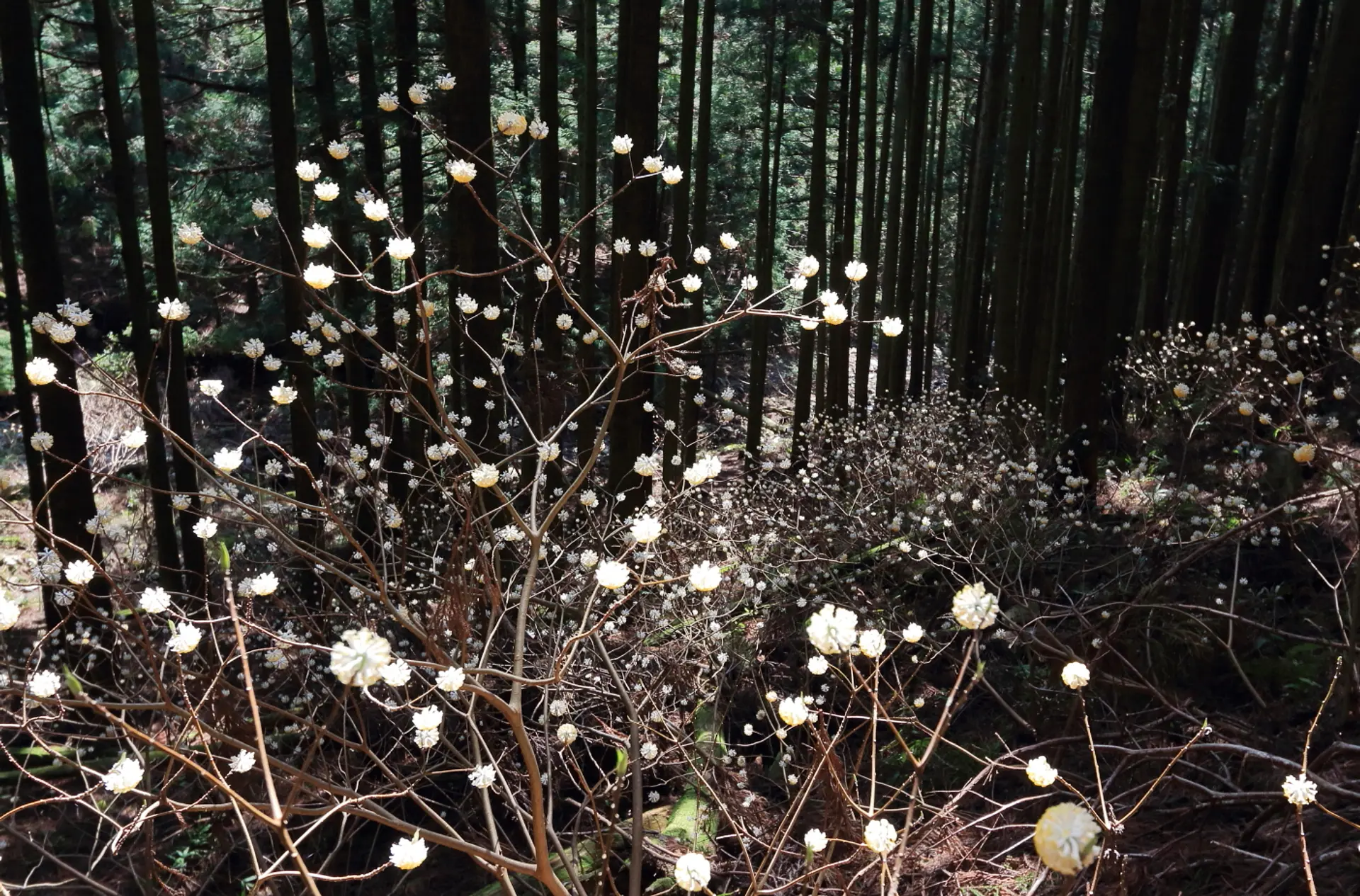 こちらのスポットは「野登山のミツマタの森」とも呼ばれていて、登山道から入って山の中腹にあります。筆者が感じた特徴としては、今回のスポットの中では秘境感&ワイルド感を味わえるスポットです!