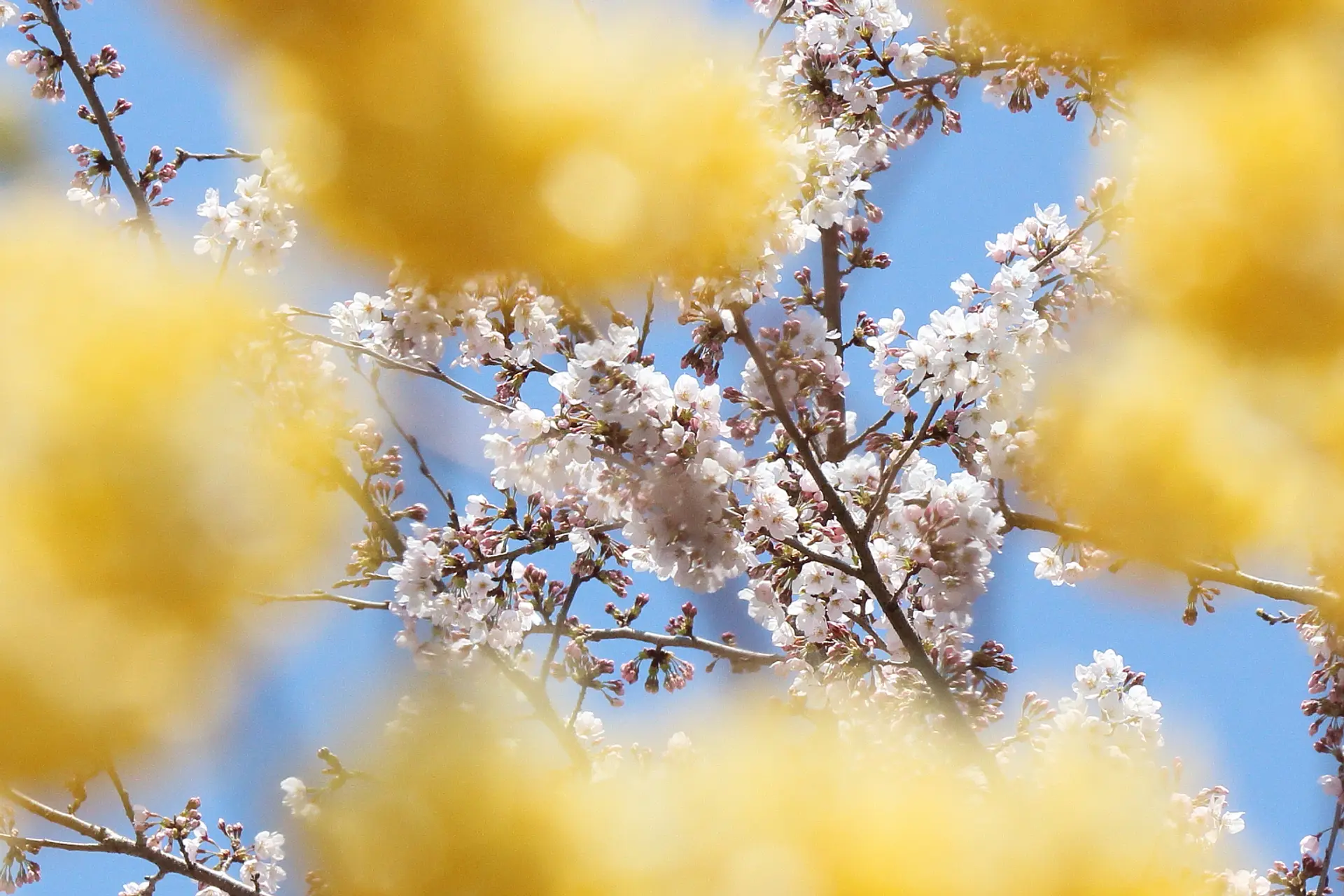上の写真は、次に紹介するスポット①で撮影したものですが、黄色い花がまだ少なく(花が開いているものが少なく)、白い花がまるで雪玉のようにも見えます。花色の変化を楽しむために、幾度か足を運んでみるのもおススメです。