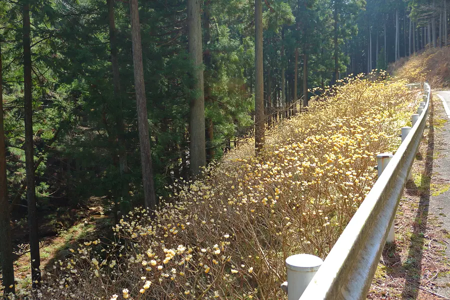 こちらのミツマタ群生地の周辺道路は非常に狭く、周辺に駐車スペースはありません。