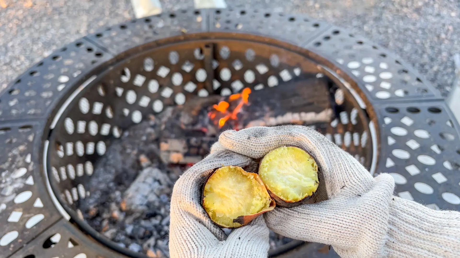 たき火のエリアでは有料の焼き芋体験も可能。三重県内の農家から仕入れたほくほくのお芋はいちごとは違った甘みを楽しめます。焼き上がりには30~40分ほどかかるので、残りの滞在時間を見ながらぜひ、挑戦してみてください。(2本500円)