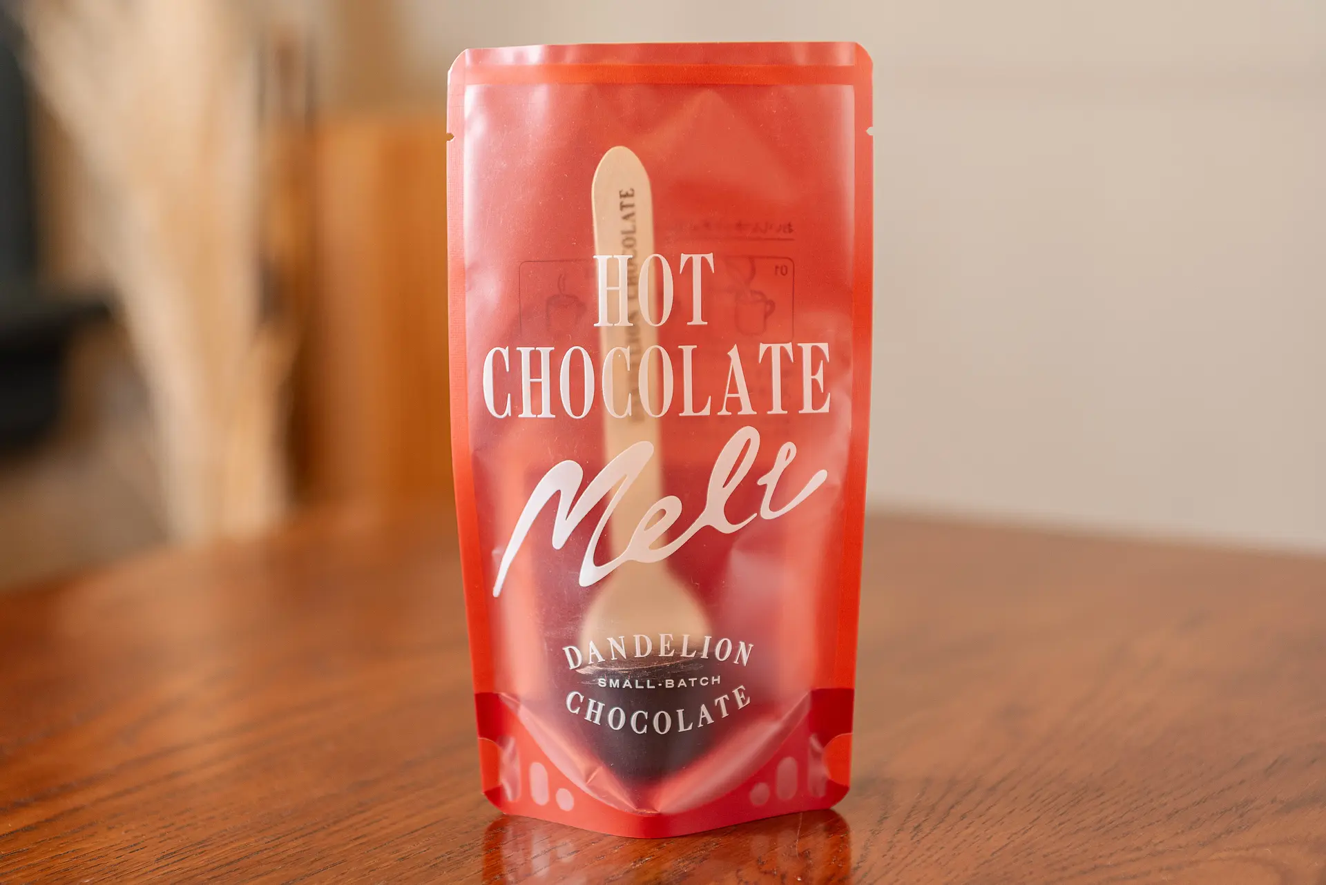 かわいらしい木製のスプーンがチョコレートにぷすりと刺されたこの商品は、ホットミルクに加えるだけでおいしいホットチョコレートが作れるというものです。