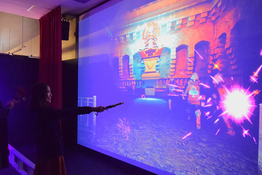杖で魔法をかけながら、自分のペースで進むウォークスルー型のアトラクション。ストーリーが流れ、杖の使い方を練習したら、鏡の迷路を進んでいきます。