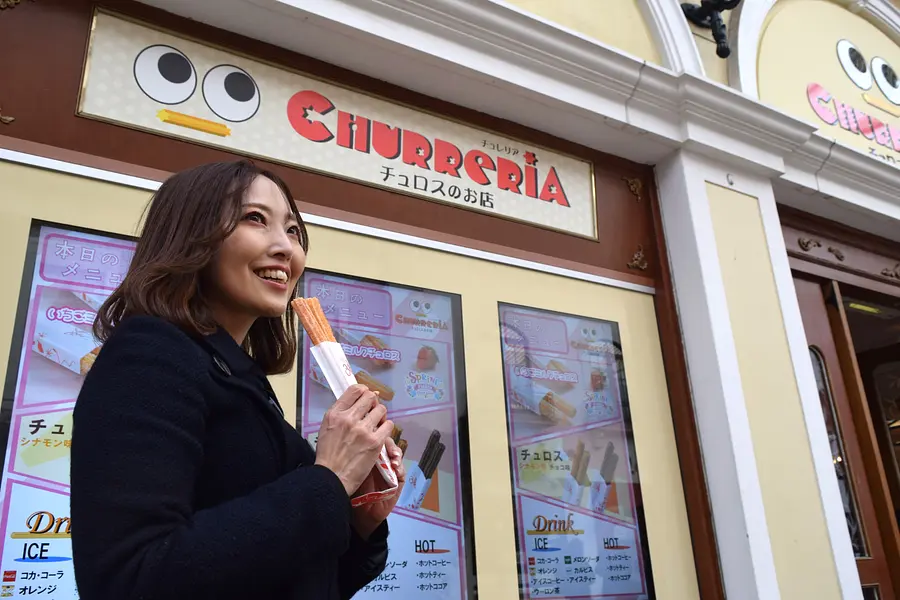 チュロスのお店「チュレリア」は、志摩スペイン村に来たなら外せないお店のひとつ。定番のシナモン味とチョコ味に加え、春らしい「いちごミルクチュロス」を食べ歩きしましょう。