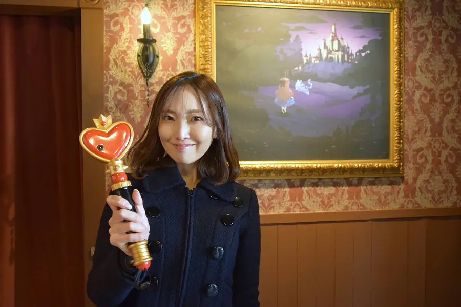 私が手に持っているのは、新アトラクション「アリス イン ダークランド」のお土産として購入できる魔法の杖。他にも、アリスのキャラクターたちのアクリルキーホルダーやマグカップ、コンパクトなどが新登場しました。