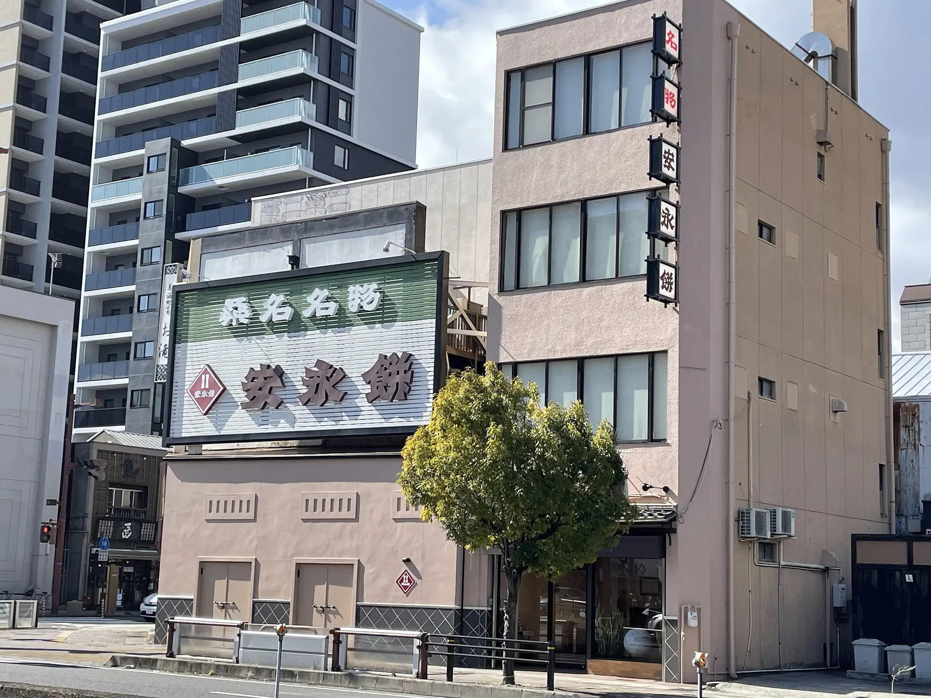 桑名駅東口を出て北に5分ほど歩くと、国道1号沿いにあるお店が「永餅屋老舗」です。永餅屋老舗の安永餅についても紹介します。