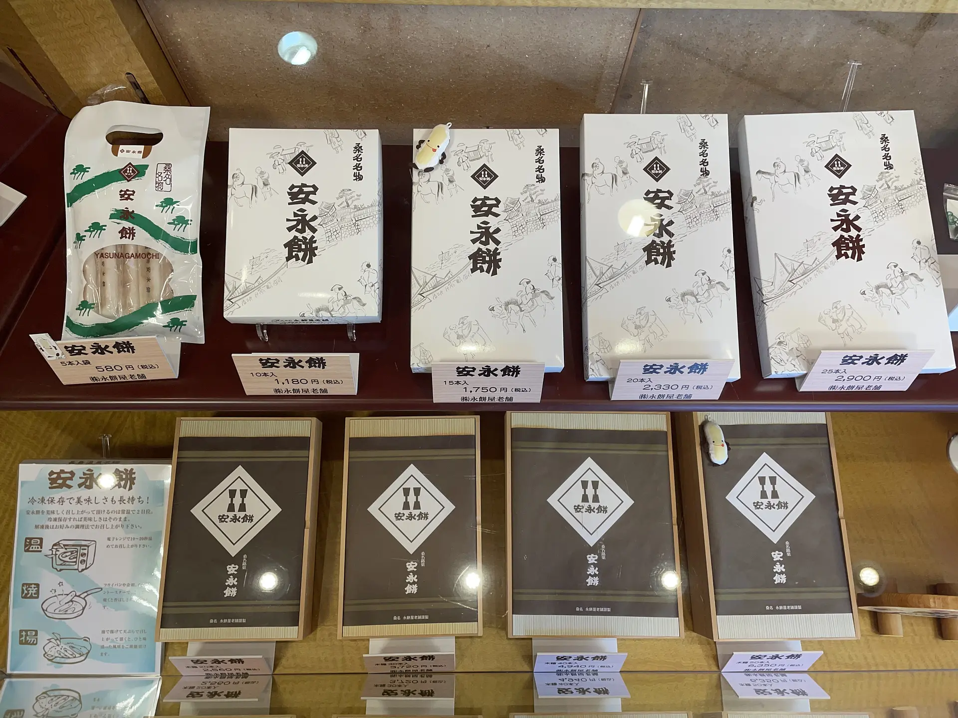 創業は江戸時代中期ごろ。かつては街道沿いの茶屋街で焼き餅を販売していました。この茶屋街があった地域が「安永」というところで、明治時代に入り、桑名にも鉄道駅が設置されたことに伴い現在の地に移転したそうです。