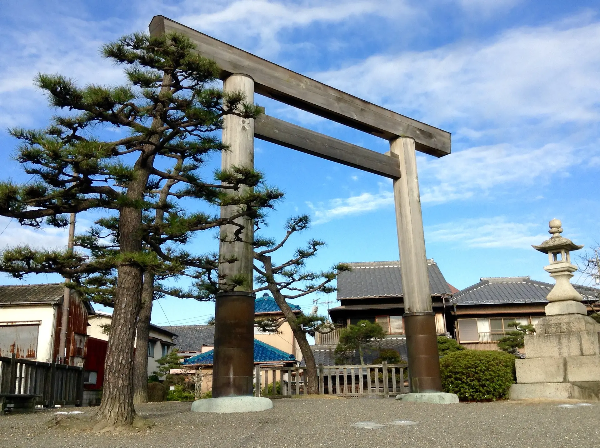 江戸時代、桑名宿は東海道の中でも宮宿(愛知県)との間の七里を船で渡って結ぶ陸の玄関口でした。その船の乗船待ちのために多くの人々が立ち寄ったそう。七里の渡跡は東海道の船着き場の跡地です。揖斐川に向かってそびえ立つ鳥居は伊勢神宮の宇治橋の鳥居の御用材が用いられているんですよ!
