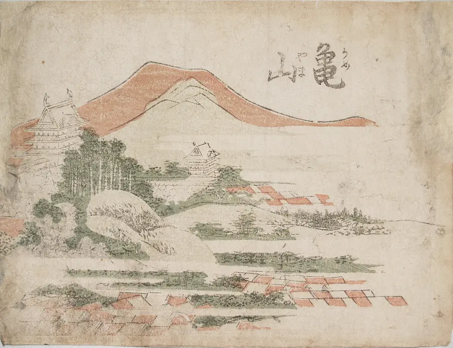 亀山市は、古代には日本書紀に登場する「鈴鹿関」と呼ばれた関所が置かれ、江戸時代には、東海道五十三次の宿場町として亀山宿、関宿、坂下宿の3宿が置かれていました。 当時の東海道の様子は、様々な浮世絵師が描いた人気の題材で、その中でも歌川広重の「東海道五拾三次」シリーズが有名ですが、令和7年の大河ドラマ「べらぼう」の主人公である、蔦屋重三郎と関係があった葛飾北斎も、亀山、関などを描いています。