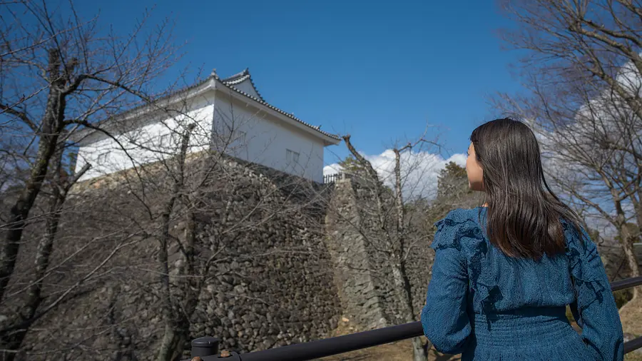 三重県で唯一現存する城郭建造物として県文化財(有形建造物、史跡)に指定されている亀山城多門櫓が特徴的な亀山宿。広重の『雪晴』には、急な坂道を上り亀山宿の西端に位置する京口門へ向かう大名行列と思われる一行が描かれています。描かれた京口門は残っていませんが、平成23年8月から行われた平成の大修理を経て建築当時の姿へと復原された亀山城多門櫓を見上げると、江戸時代の旅人も同じ様な風景を見ながら旅したことが思い起こされます。