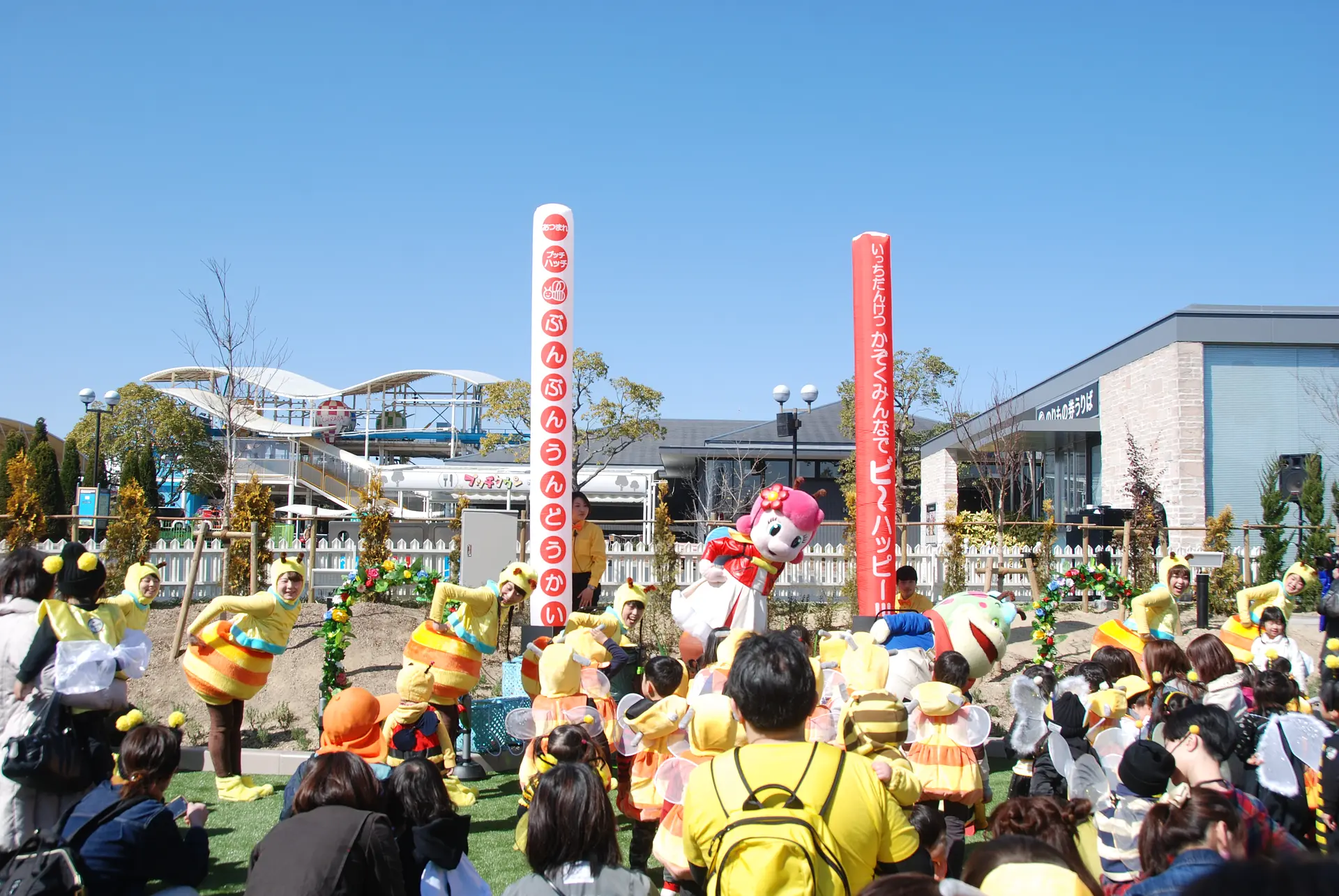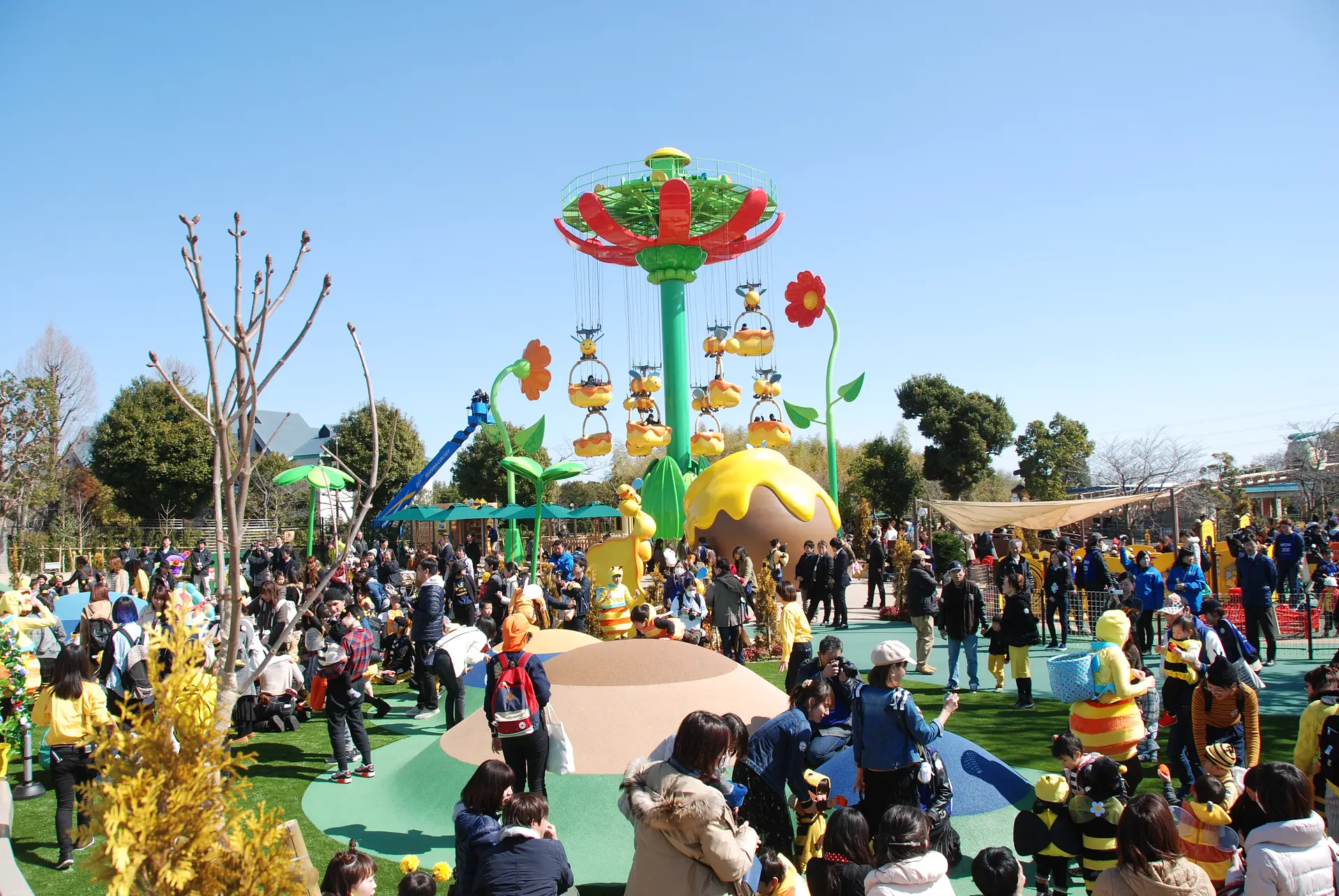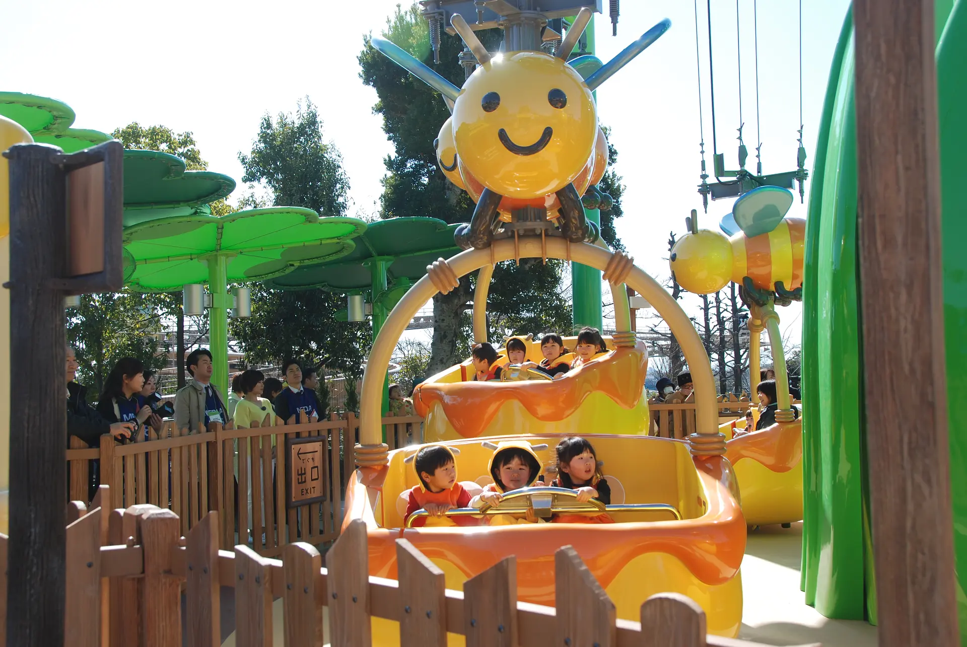 鈴鹿サーキット遊園地メインゲートから左側後方にある、自然がいっぱいの「チララのハローガーデン」エリアに新アトラクション「ぶんぶんはち」をはじめ、0~3歳までを対象にしたプレイフィールド「ぶんぶんばちひろば」が誕生します。