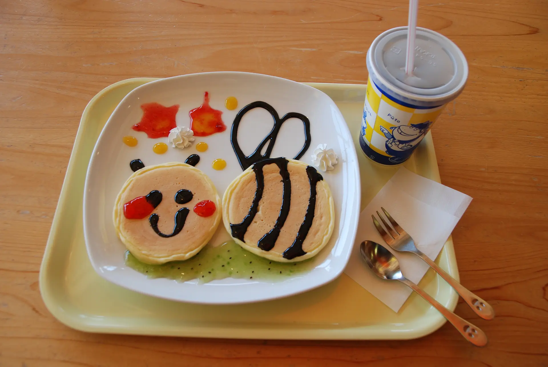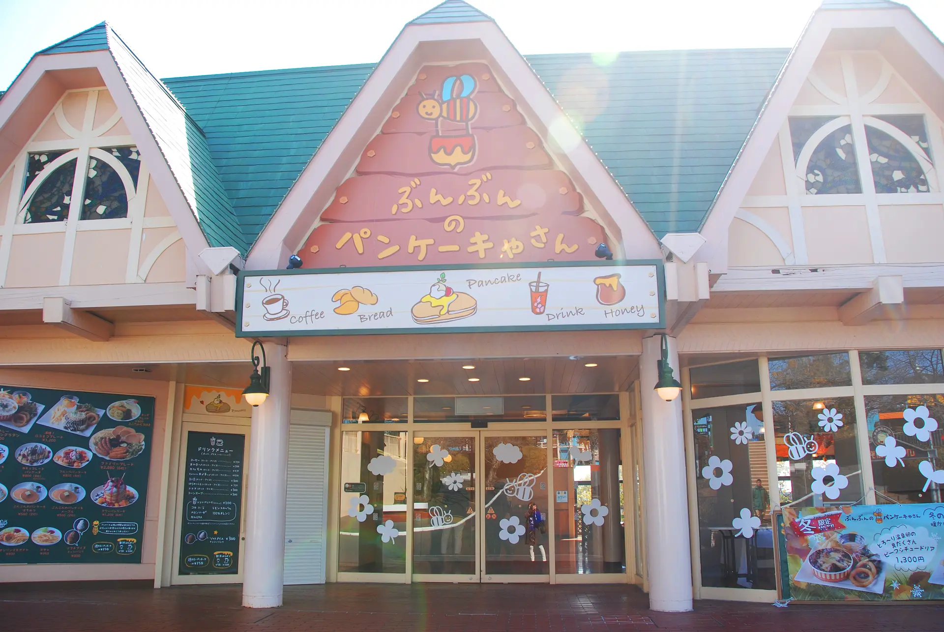 おもいっきり遊んだ後はここ、「ぶんぶんのパンケーキやさん」へお立ち寄りください。メニューも豊富で、ファミリーに大人気のスポットです。