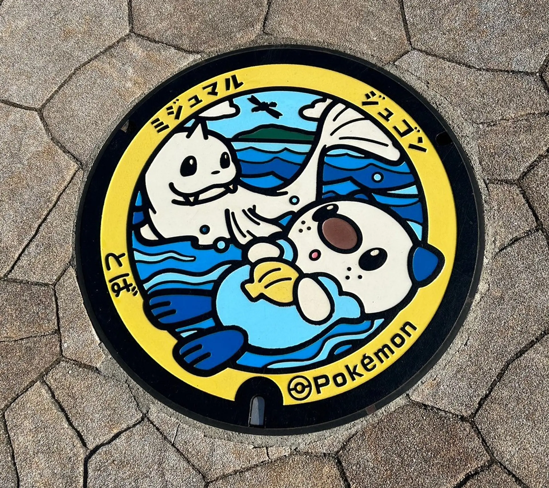 三重県の『ポケふた』は、みえ応援ポケモンの「ミジュマル」をメインとした寄贈先市町独自のイラストが描かれており、令和4年3月を皮切りに県内各地に設置され、令和7年3月から順次、桑名市、尾鷲市、いなべ市、菰野町、大紀町、紀北町、御浜町にも設置される予定で、三重県29市町全てに『ポケふた』が設置されることになります!